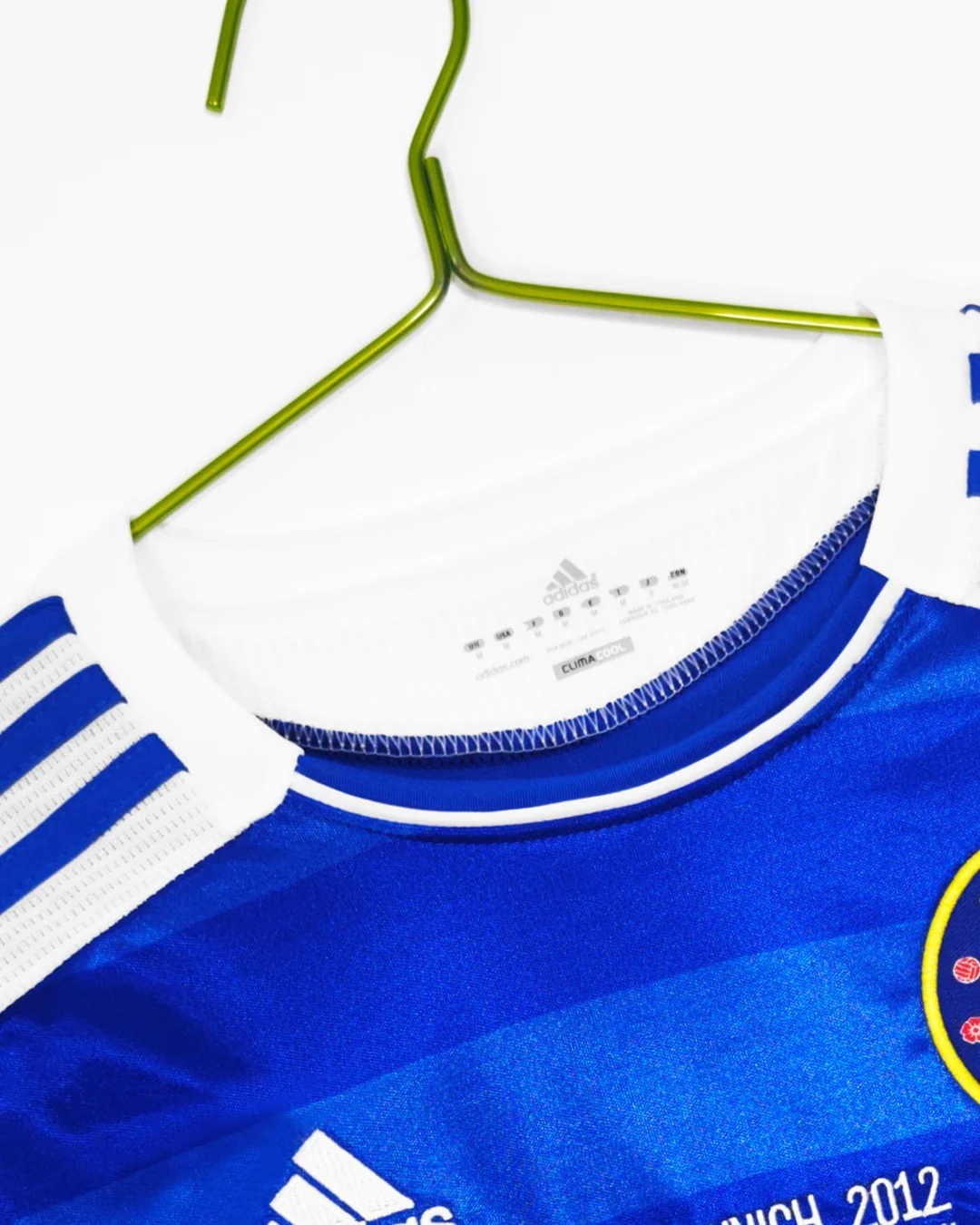 Celebrate Chelsea’s triumphant 2011/12 season with the official Chelsea FC Home Jersey, a sleek Adidas design that captures the spirit of a historic year in the club’s history. This iconic blue jersey features clean lines and subtle design with white trims that reflect Chelsea’s status as Premier League champions and their first UEFA Champions League winners.