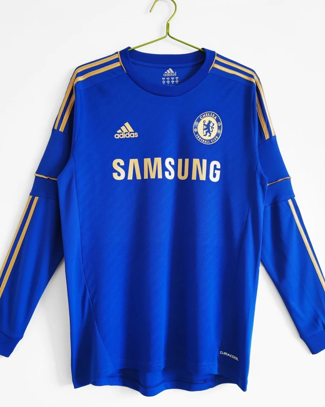 Show your support for the Blues with the Chelsea FC 2012/13 Home Jersey in a comfortable long sleeve design. Manufactured by Adidas, this jersey embodies the pride and tradition of Chelsea FC during a memorable season, featuring the club’s iconic royal blue color alongside elegant gold accents that highlight the team’s spirit and heritage.