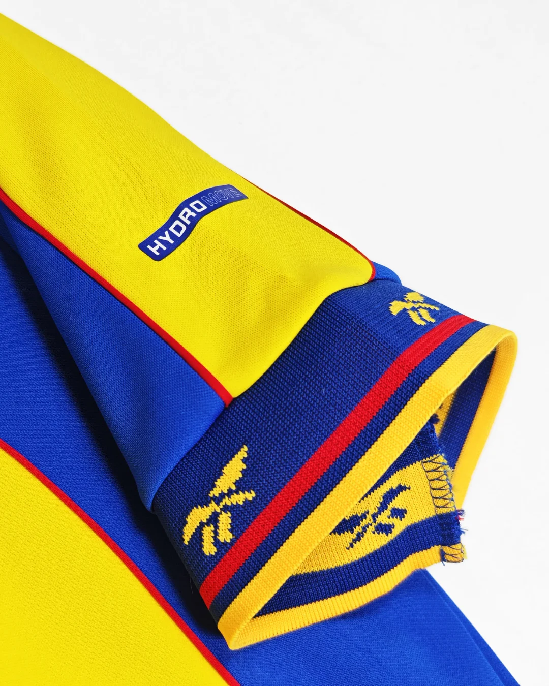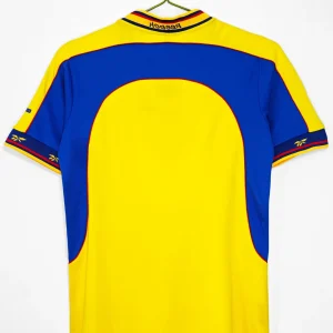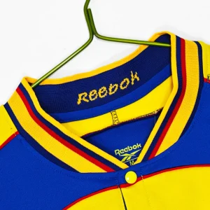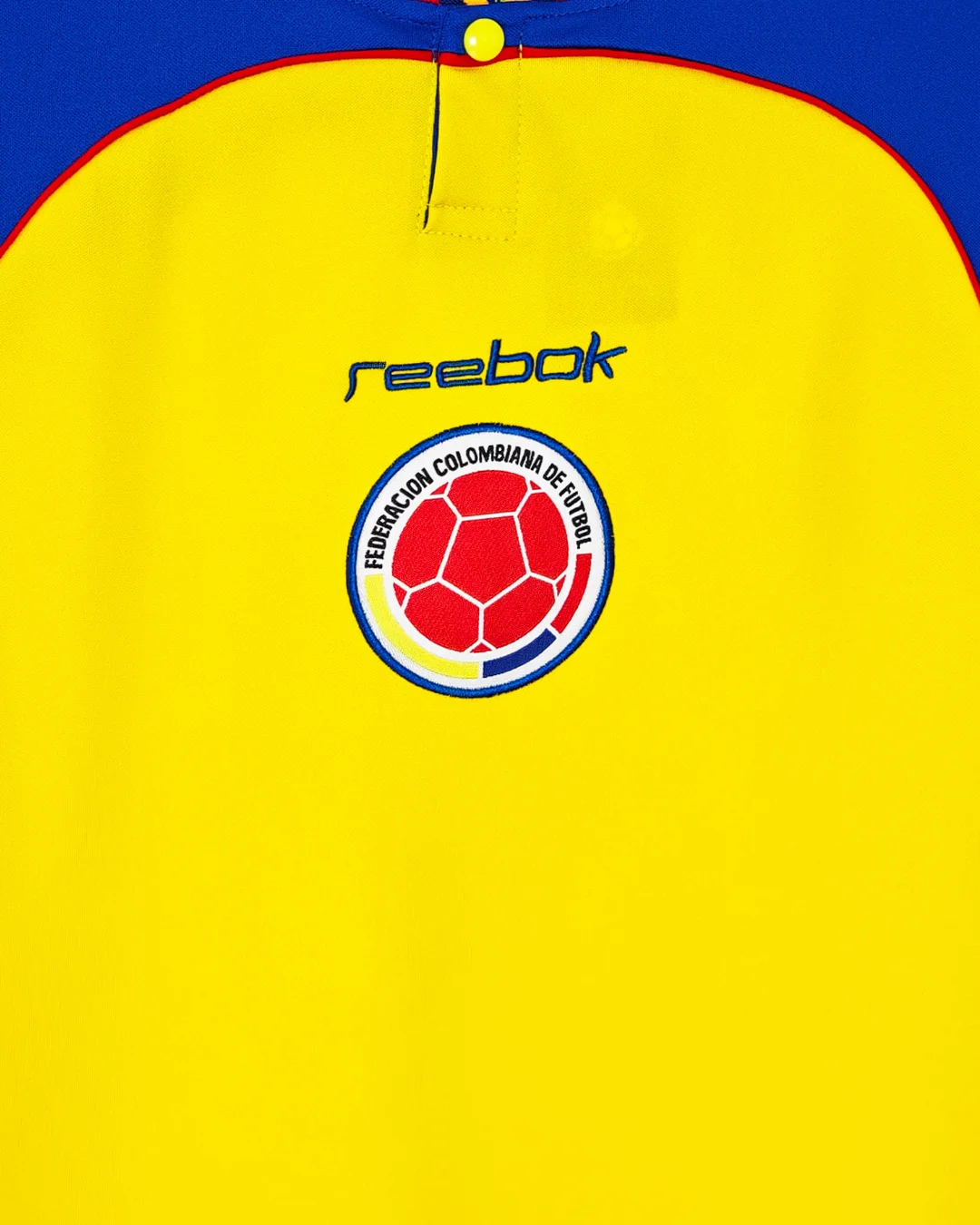 Celebrate the glory of Colombia’s historic 2001 Copa América victory with the Colombia 2001 Home Jersey by Reebok. This vibrant yellow jersey is a symbol of Colombia’s most triumphant era in international football, representing unity, passion, and the fighting spirit of Los Cafeteros. The design features a striking yellow base, enhanced with royal blue and red accents that pay homage to the Colombian flag.