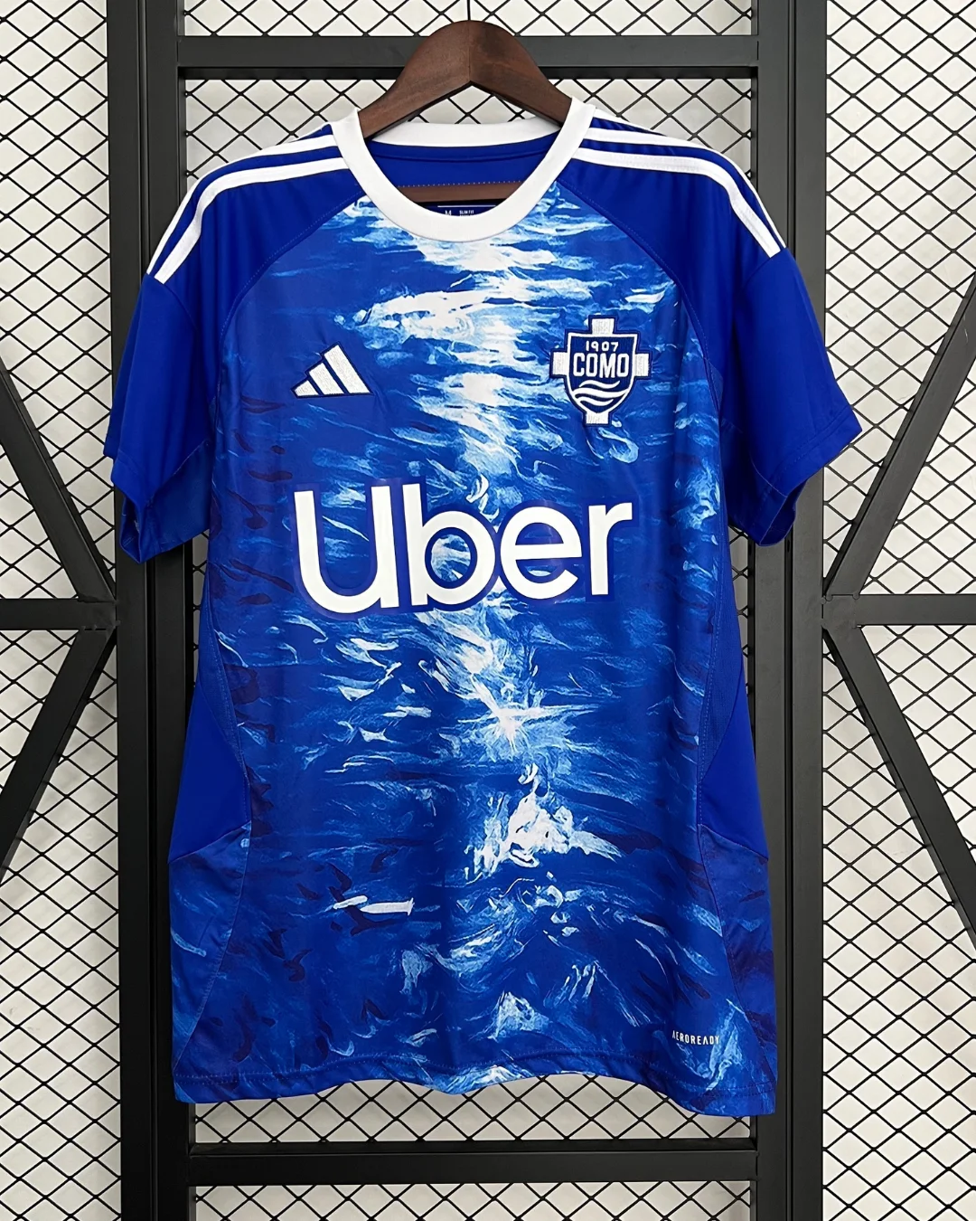 Step onto the pitch in style with the Adidas Como 1907 25/26 Home Stadium Jersey, a kit that blends football tradition and stunning artistry, inspired by the serene beauty of Lake Como. The jersey features the club’s iconic royal blue base, adorned with an elegant “Lake Print” graphic that swirls across the front and lower back. This flowing, abstract motif pays tribute to the majestic waters that define the region, drawing from the creative brushstrokes of artist Golnaz Jebelli. The blue lake-inspired pattern stands out as a unique visual storytelling feature that makes every jersey a wearable piece of Como’s heritage.