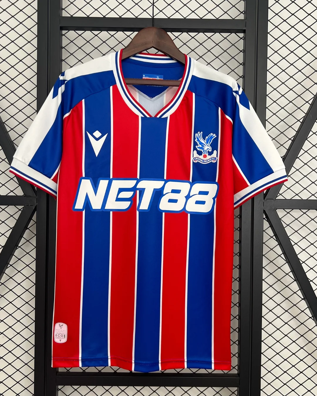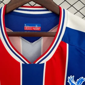 Celebrate the pride and passion of Selhurst Park with the Macron Crystal Palace 25/26 Home Stadium Jersey, a fresh take on the club’s iconic red and blue colors with modern enhancements. This season’s home kit features traditional red and royal blue vertical stripes, now made bolder and sharper by the addition of thin white pinstripes separating each band for a fresh, precise look. The shoulders showcase clean white panels that flow into the sleeves, adding contrast and a contemporary edge.
