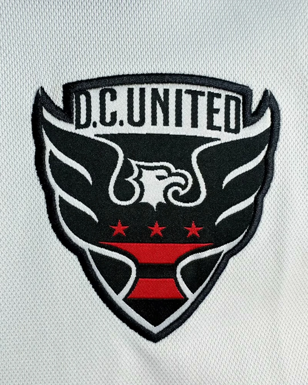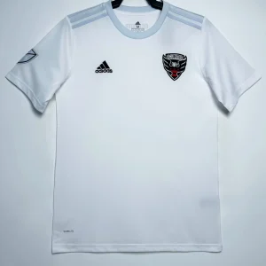 DC United’s 2019 Away Jersey from Adidas powered their playoff push at Audi Field during Wayne Rooney’s debut MLS season, worn by stars like Luciano Acosta, Chris Durkin, and Frédéric Brillant as Black-and-Red finished Eastern Conference 8th. The clean white base with subtle gray collar trim features the iconic black eagle crest embroidered on the left chest, Adidas logo on the right and crew neck collar, modern MLS design blending Washington DC heritage with contemporary performance.