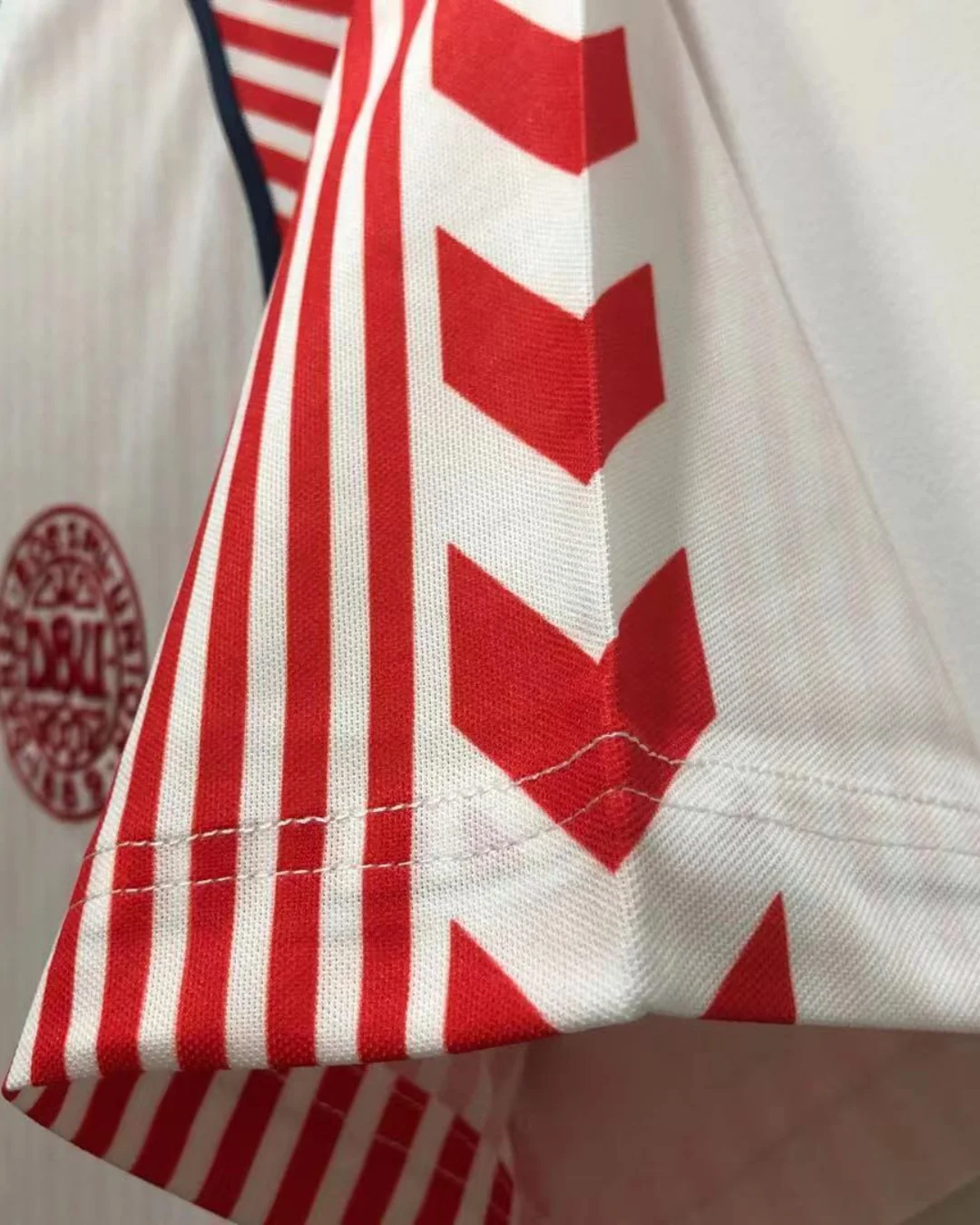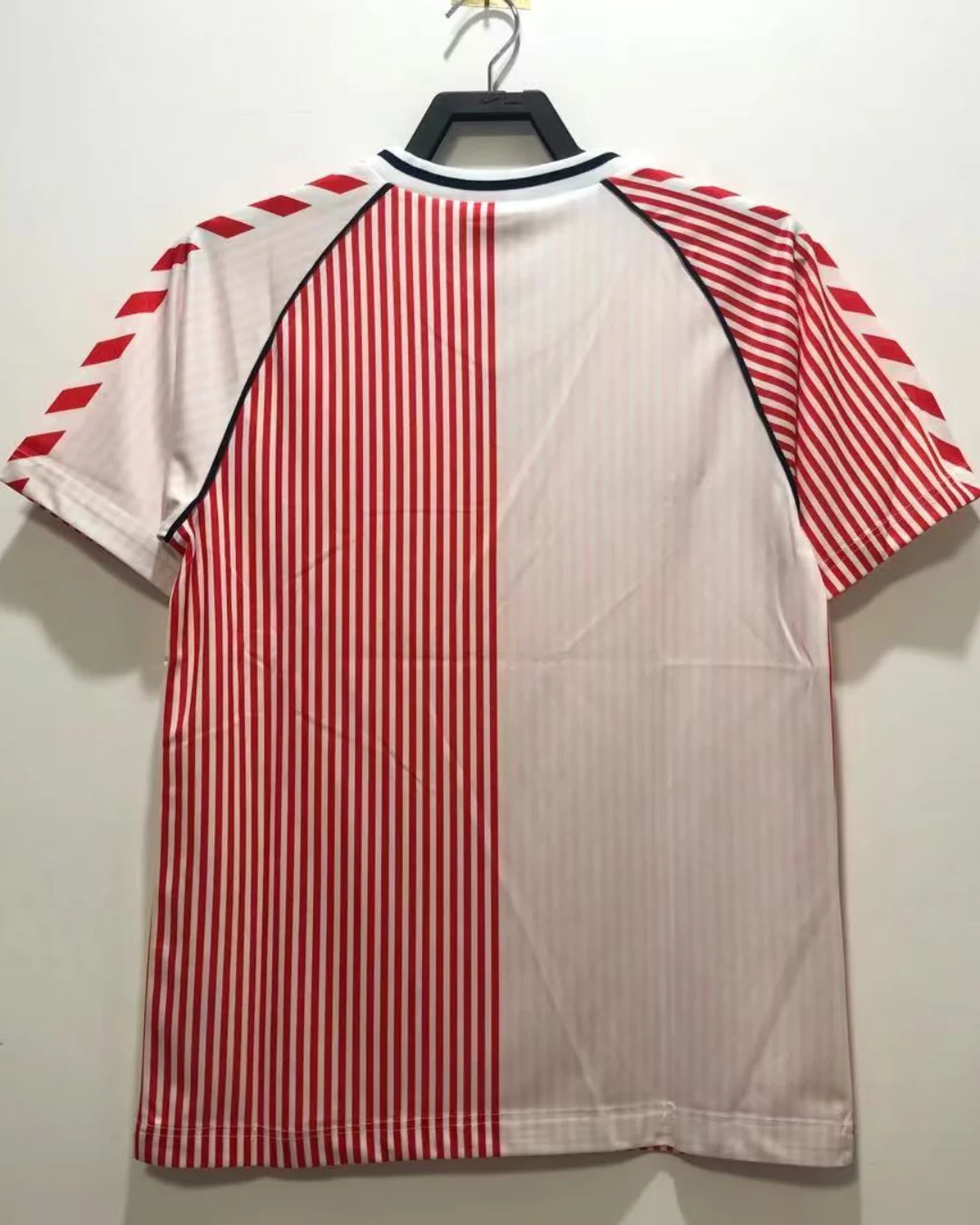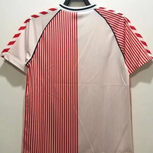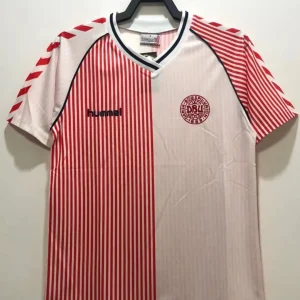 Relive the brilliance of Danish Dynamite with the Denmark 1986 Away Jersey, one of the most iconic football shirts ever created. Designed by Hummel for Denmark’s debut FIFA World Cup in Mexico, this legendary away kit is known for its striking red-and-white vertical pinstripes, V-neck collar, and bold chevron detailing down the sleeves. It’s a timeless design that helped define 1980s football style. This jersey is made from 100% polyester construction for comfort while preserving the retro feel.