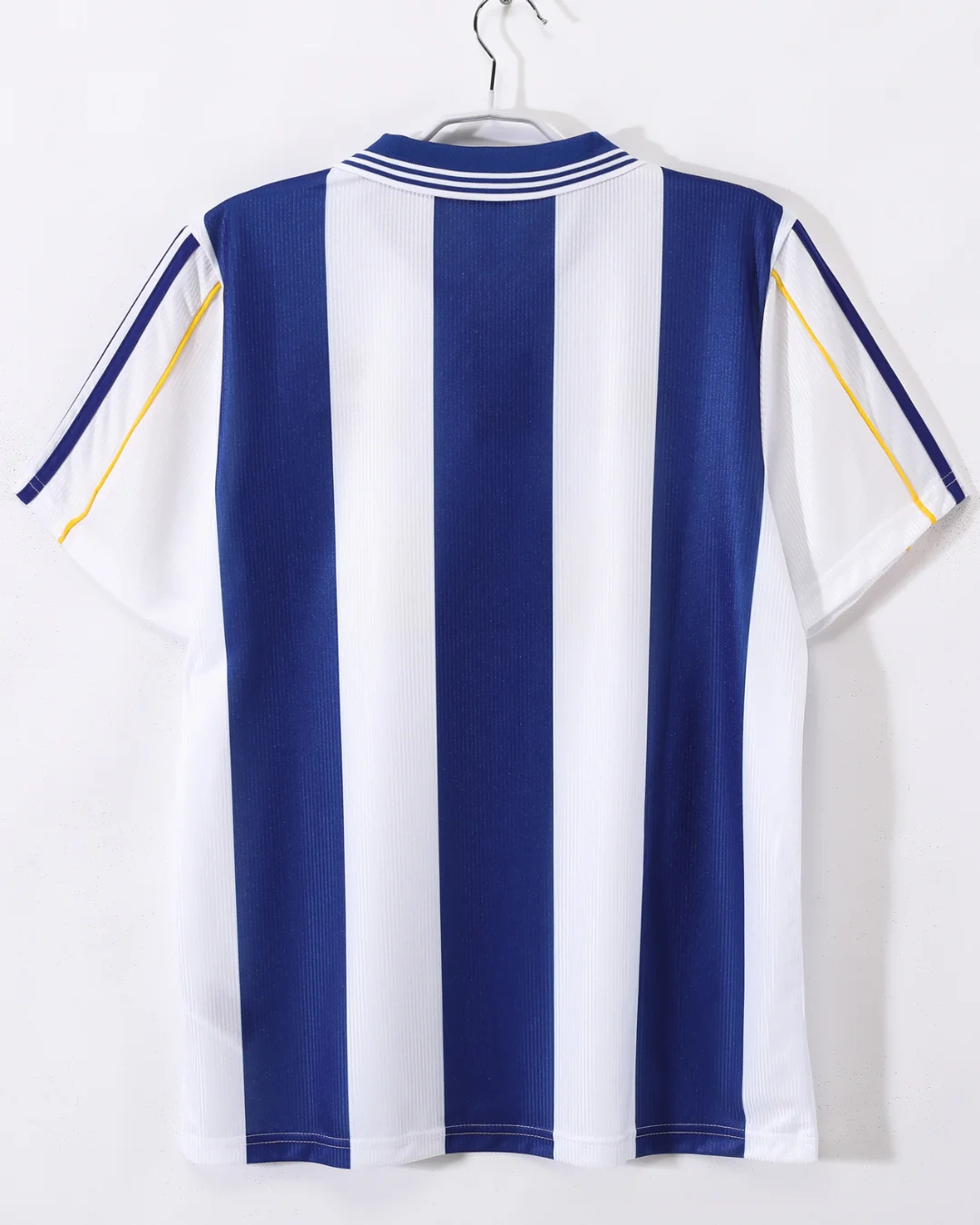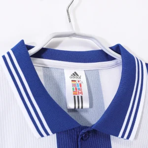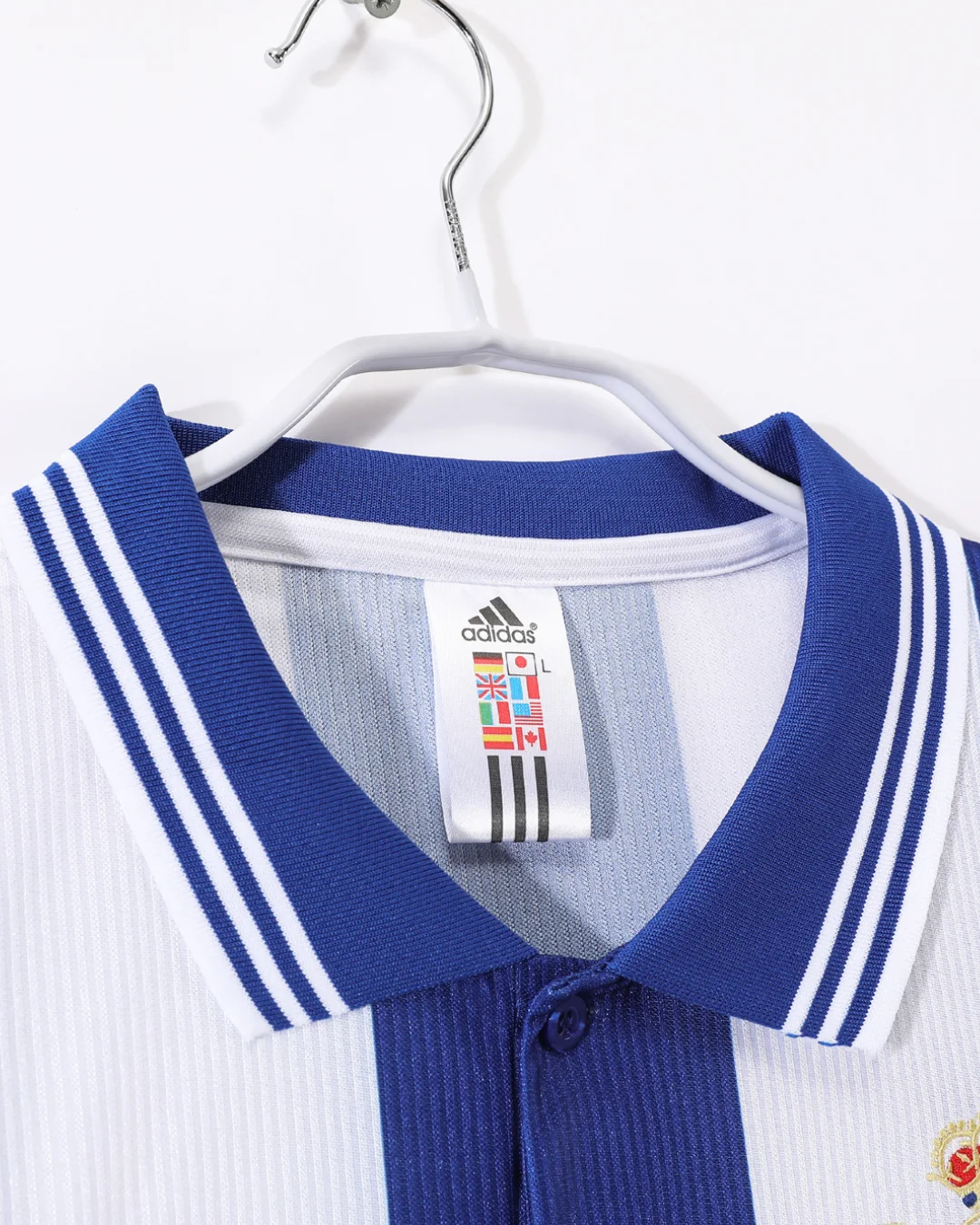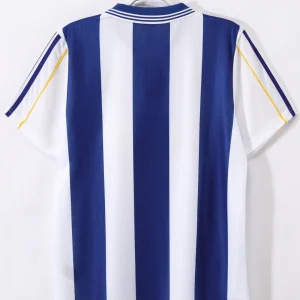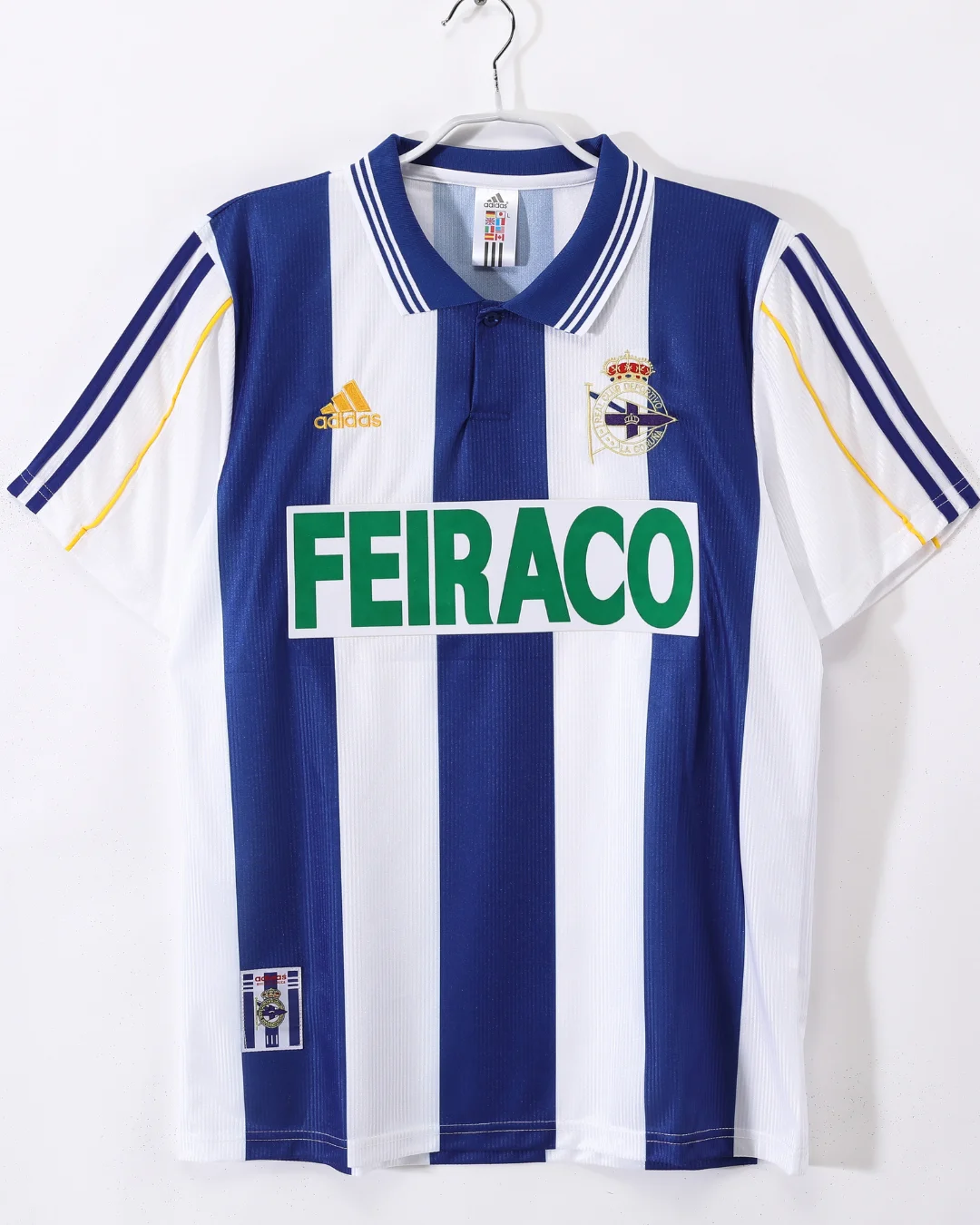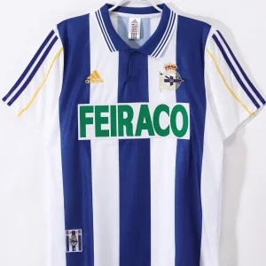 Celebrate a golden era of Deportivo La Coruña with the 1998-2000 Home Jersey, a classic Adidas design that witnessed the club’s rise to prominence in Spanish football. This striking jersey features the traditional blue and white vertical hooped pattern, symbolizing the club’s identity and pride during one of its most successful periods.