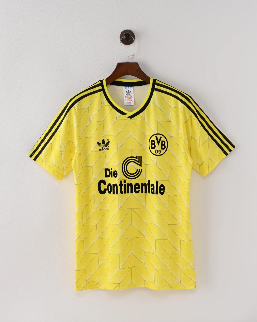 Celebrate the vibrant football heritage of Borussia Dortmund with the authentic 1988/89 Home Jersey, worn during a significant season. This iconic kit features the club’s trademark bold yellow base with black and white accents, giving it an unmistakable and energetic look.