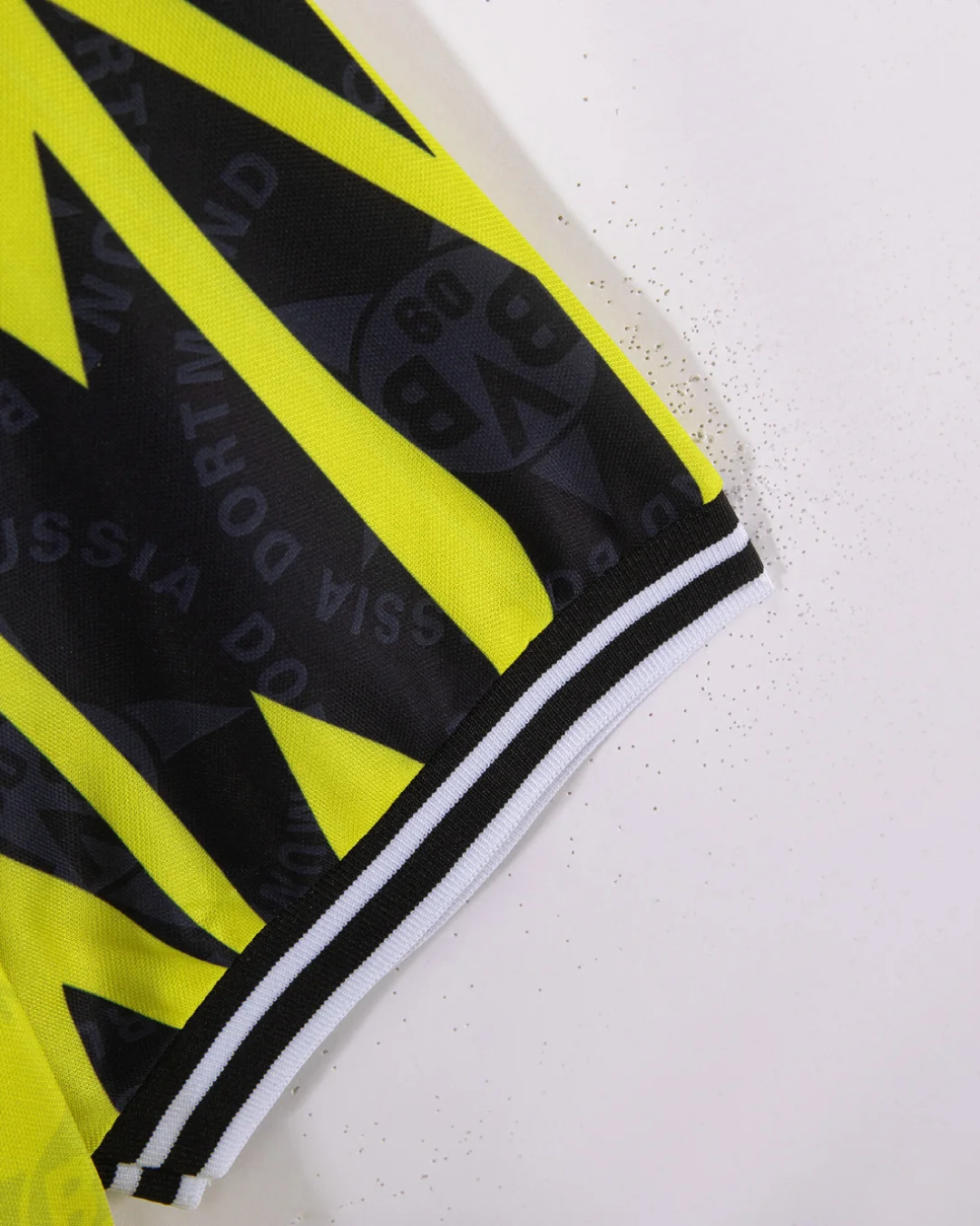 Celebrate Borussia Dortmund’s historic 1994/95 season, where they won their first-ever Bundesliga title, with this iconic 1994/95 Home Jersey. This classic Puma kit features a vibrant neon yellow base color complemented by bold black accents and striking geometric patterns that embody the energy and spirit of Dortmund’s rise to the top of German football.