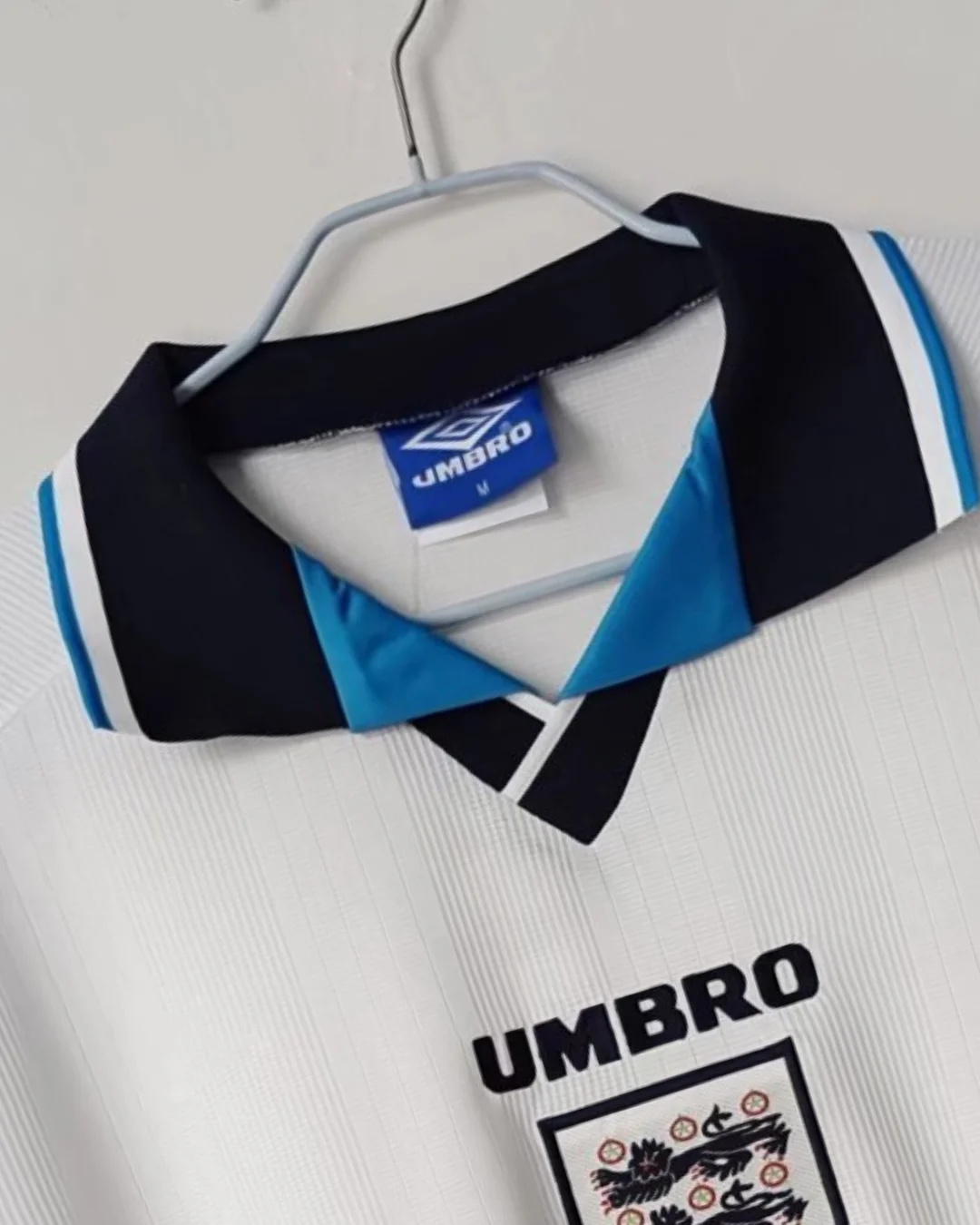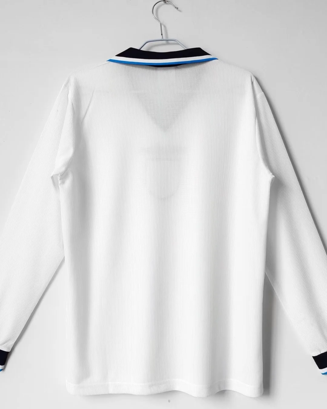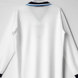 Celebrate the iconic UEFA Euro 1996 campaign with the England 1996 Home Jersey – Long Sleeve edition, a classic kit that symbolizes one of the most memorable tournaments in English football history. Worn by legends such as Alan Shearer, Paul Gascoigne, and David Beckham, this jersey represents England’s passion, pride, and pursuit of glory on home soil. Designed by Umbro, the jersey features a clean white base accented by navy blue and sky-blue trim on the collar and cuffs, reflecting England’s national colors