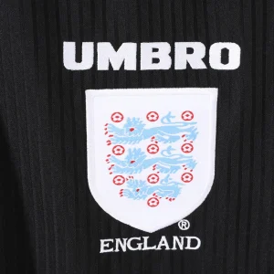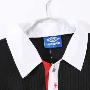 Celebrate one of England’s iconic World Cup kits with the England 1998 Third Jersey, worn during the 1998 FIFA World Cup held in France. This classic retro jersey features a bold black base with red and white detailing, creating a vibrant and striking appearance on the pitch.