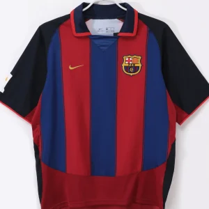 Celebrate an iconic era of football with the FC Barcelona 2003/04 Home Jersey, a classic Nike design representing a pivotal season in the club’s history. This jersey features the traditional blue and garnet vertical stripes, symbolizing the vibrant spirit and rich heritage of Barca.