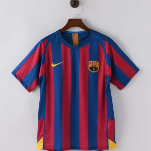 Step back into the golden dawn of modern football greatness with the FC Barcelona 2005/06 Home Jersey — the jersey that saw Barça ascend to European supremacy. Worn by icons like Ronaldinho, Deco, and a rising Lionel Messi, this shirt marked the season when the club’s beautiful football conquered both Spain and Europe.
