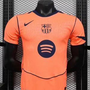 Experience the bold return of a classic with the FC Barcelona 25/26 Third Authentic Jersey by Nike, a vibrant homage to the club’s rich history and iconic designs. Featuring a striking Bright Mango (orange) base complemented with deep Midnight Navy accents, this third kit represents a fierce, modern twist while paying tribute to the legendary mid-2000s Total 90 template.
