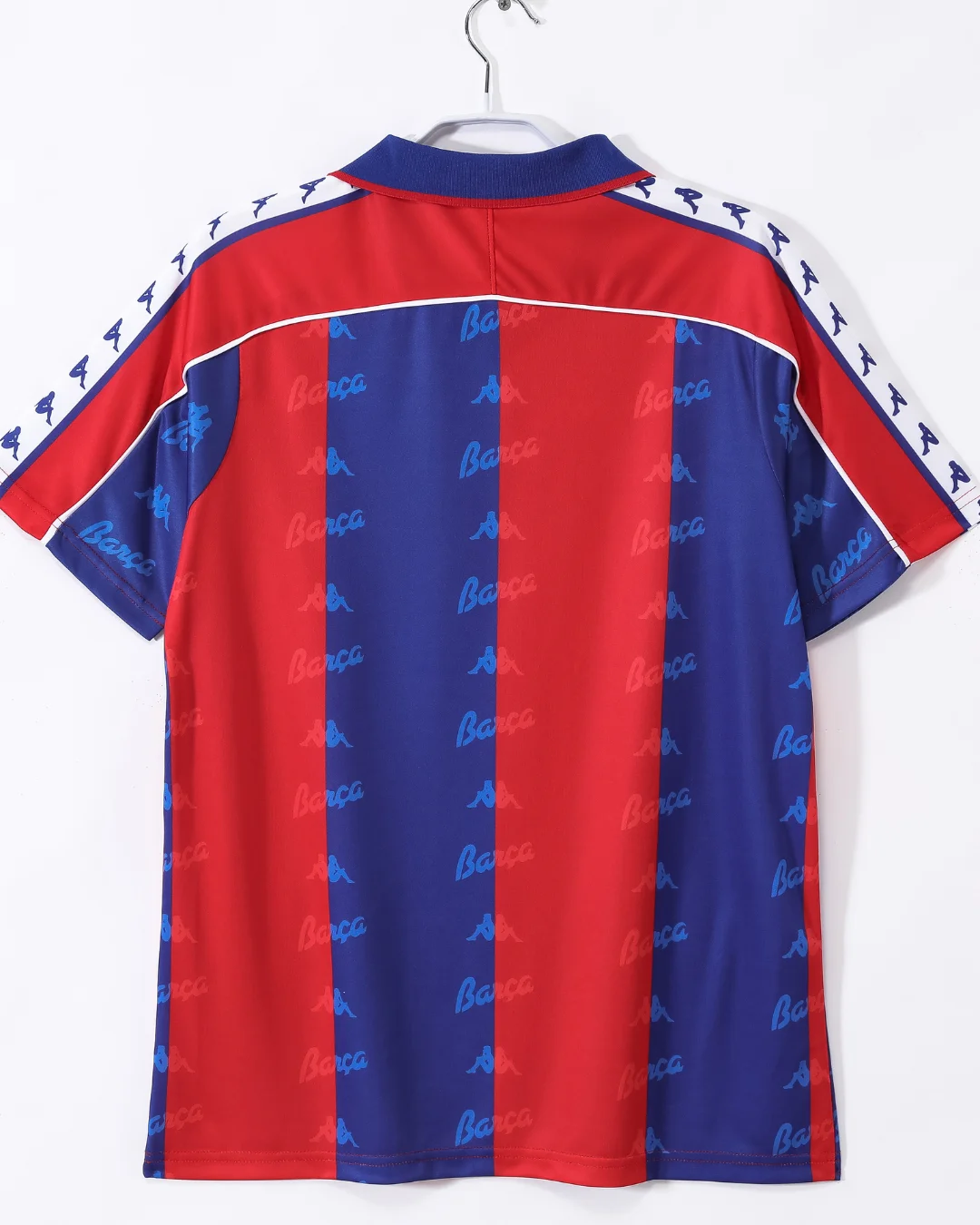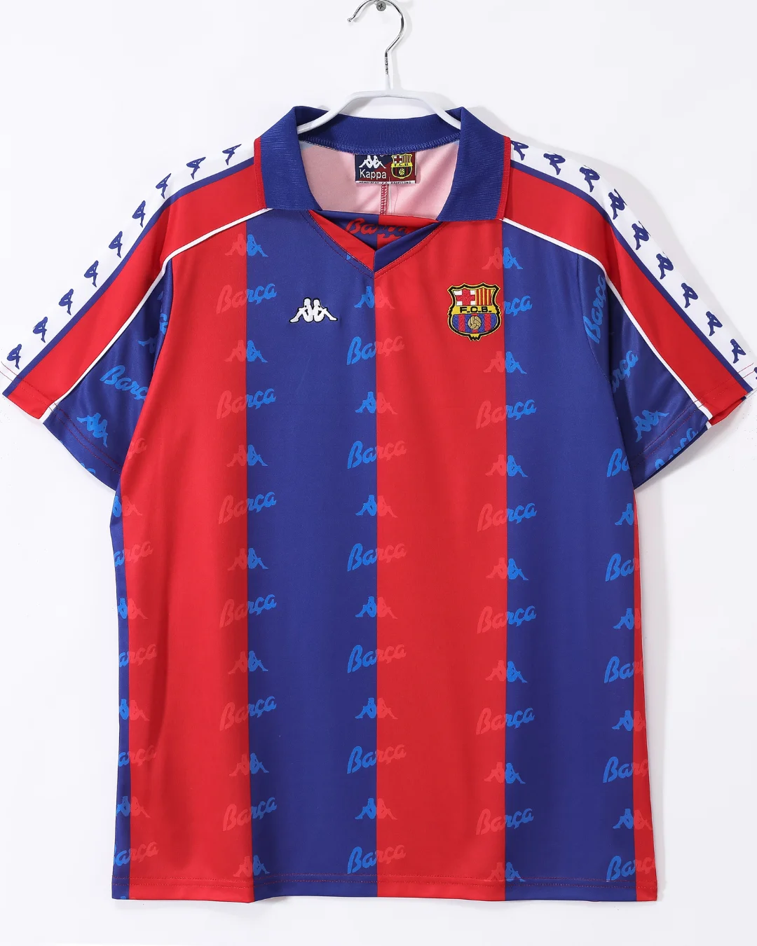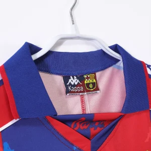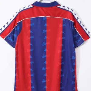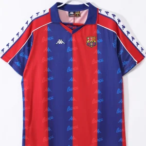 Celebrate one of the most glorious eras of FC Barcelona with the 1992-1995 Home Jersey, a classic Kappa design worn by the legendary Johan Cruyff’s ‘Dream Team’ during a period that included their first-ever European Cup victory in 1992. This iconic jersey features traditional vertical red and blue stripes with a royal blue collar and detailed white shoulder piping, embracing the club’s rich colors and style.
