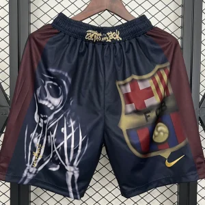 Exclusive collaboration FC Barcelona x Travis Scott Skeleton Home Shorts in red and blue