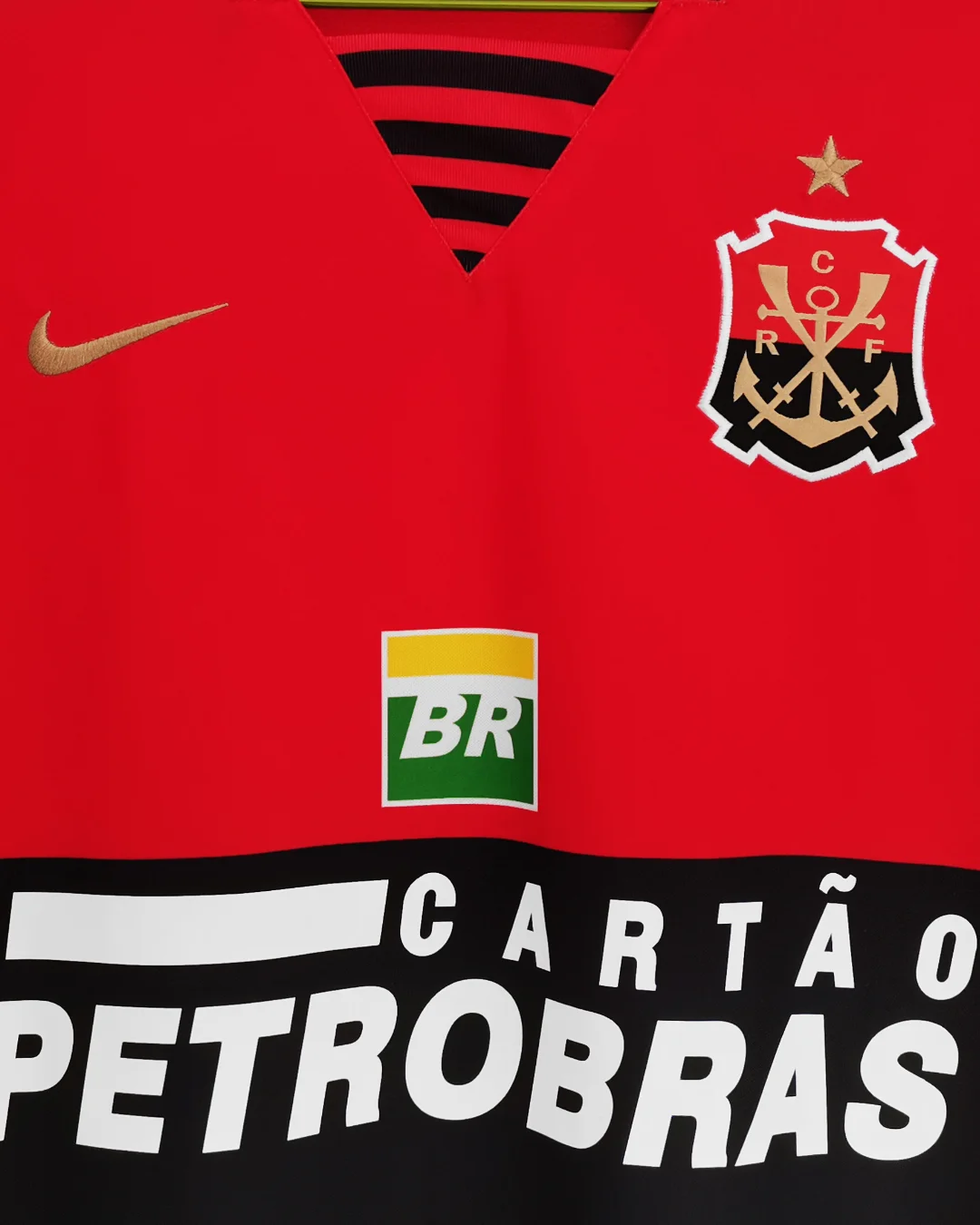 Features the rowing club shield, paying homage to Flamengo’s origins