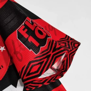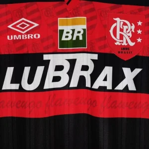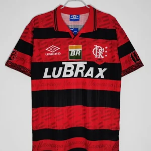 Celebrate the proud centenary season of Clube de Regatas do Flamengo with the iconic 1995/96 Home Jersey by Umbro. This classic jersey honors Flamengo’s 100 years of football history with a design that blends tradition and elegance, featuring the club’s legendary red and black horizontal stripes.
