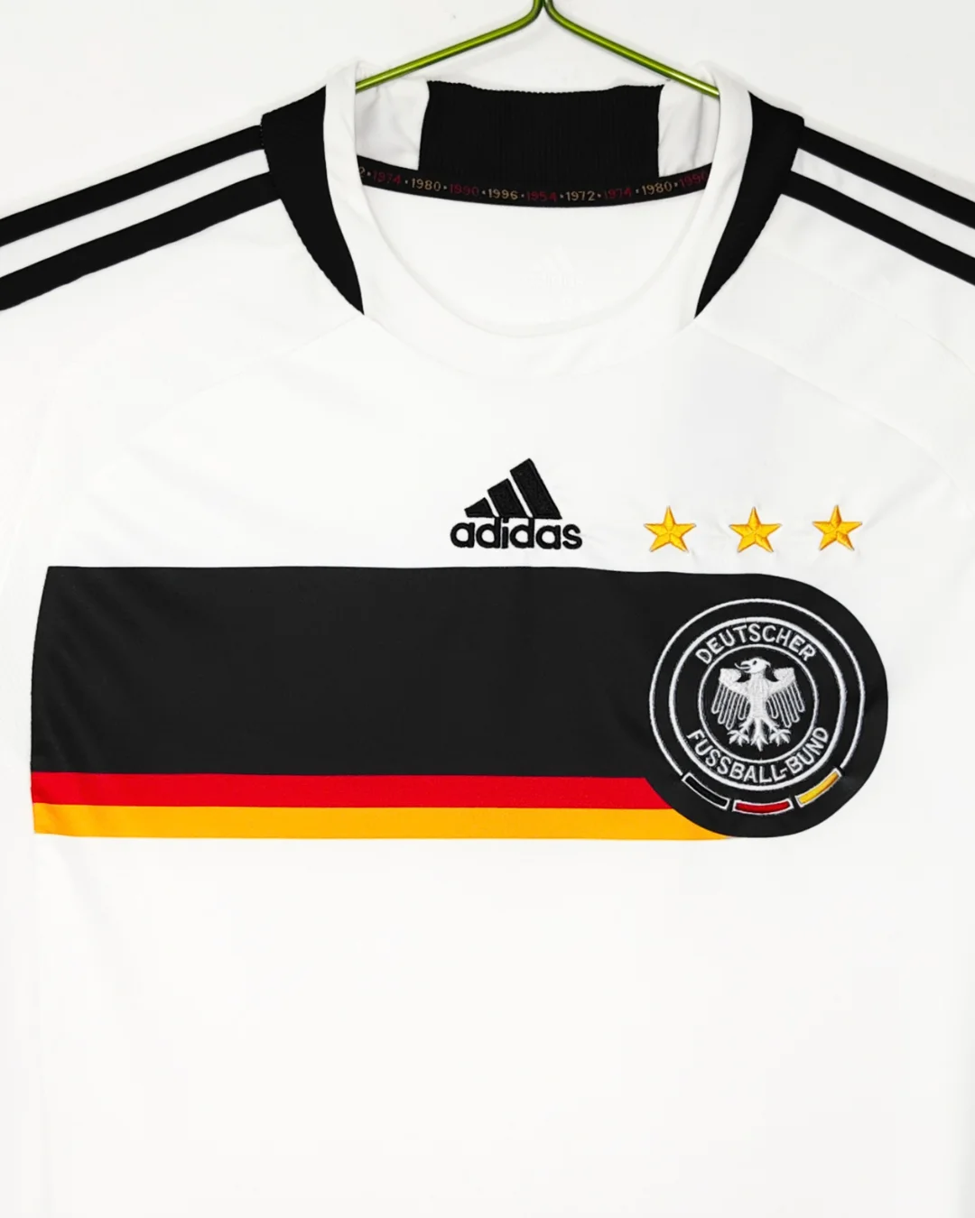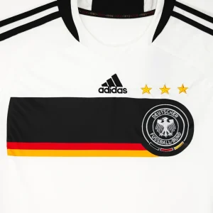 Own a piece of European Championship history with the Germany 2008 Home Jersey, worn by Die Mannschaft as they reached the Euro 2008 final in Vienna. Crafted by Adidas, this home shirt carries the classic white base that has long defined the German national team, making it instantly recognizable on any matchday. The white jersey features black, red and gold chest band, with adidas’ signature three‑stripes in a bold black layout that runs from the shoulders down the sleeves, tying the kit firmly to the club’s traditional black‑red‑gold identity. This kit was proudly worn as Germany pushed all the way to the Euro 2008 final, narrowly losing 1–0 to Spain in Vienna.
