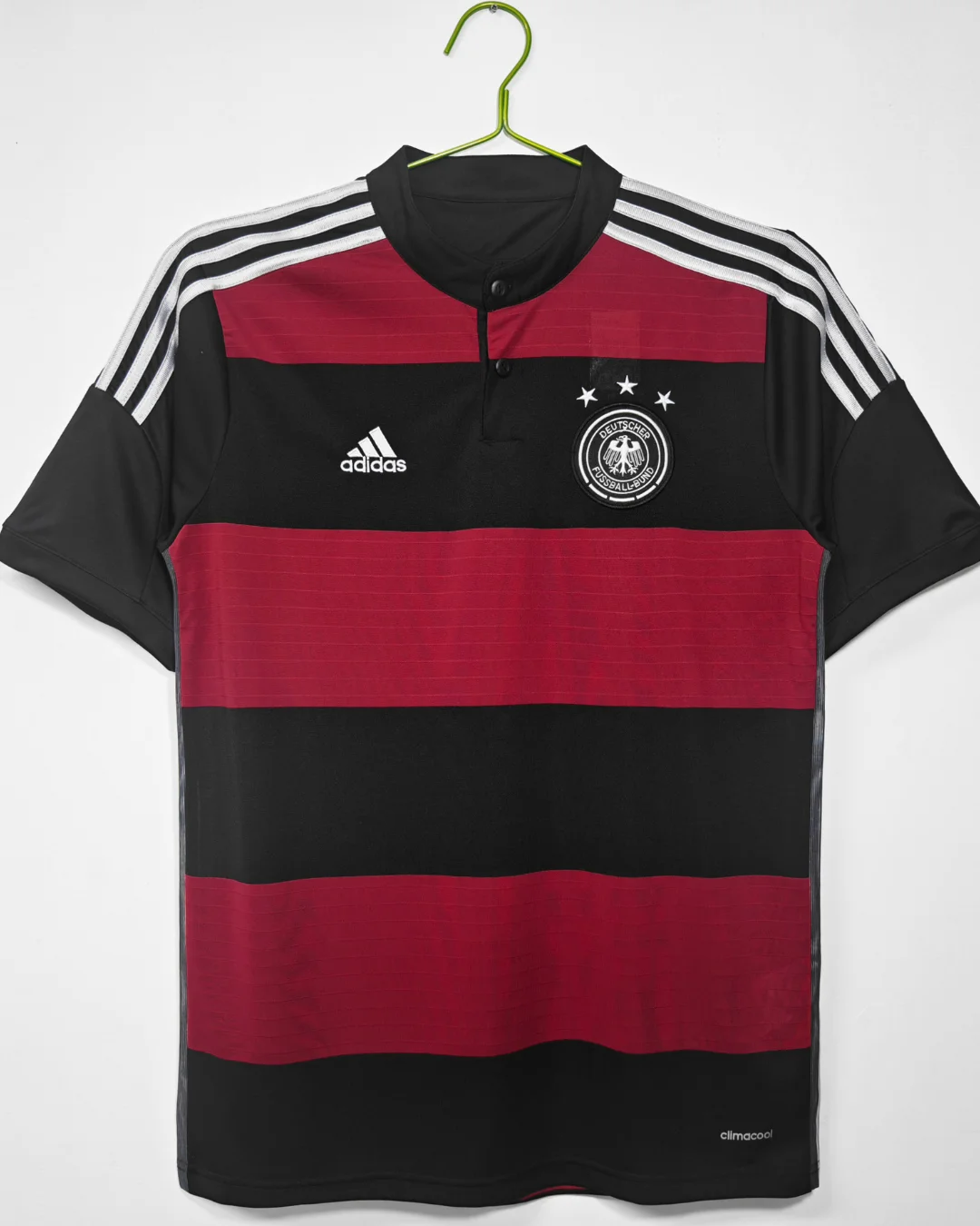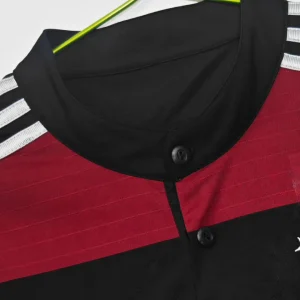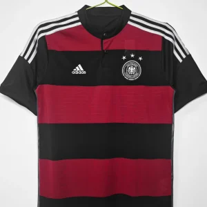 Celebrate Germany’s historic 2014 World Cup victory with the official Germany 2014 Away Jersey, an Adidas design symbolizing strength, passion, and unity on football’s biggest stage. This bold jersey features a striking pattern of red and black horizontal stripes on a black base, inspired by the national flag colors, creating a powerful and modern look.