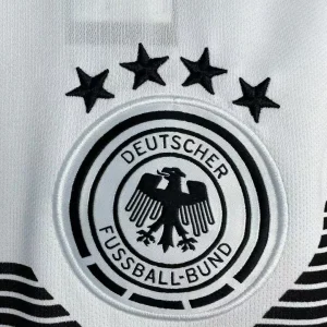 Defend world champion glory with Germany’s iconic 2018 World Cup Home Jersey from Adidas, inspired by the legendary 1990 Italia triumph that launched Die Mannschaft’s modern dynasty. The crisp white base showcases subtle black geometric line patterns echoing 90s aesthetics, elevated by a distinctive overlapping crew neck collar featuring Germany’s black-red-gold flag colors inside and a raised black chest band higher on the torso. Engineered from 100% polyester with Climalite cooling technology, it delivers superior moisture-wicking and breathability through strategic ventilation zones.