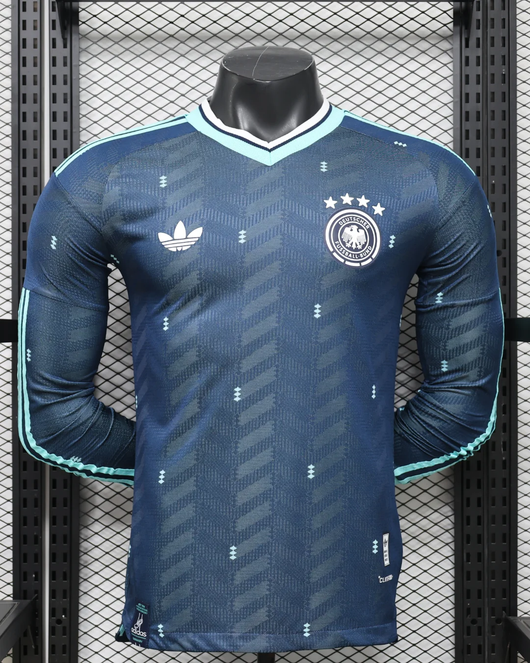 Celebrate German football heritage with the Germany 2026 World Cup Away Authentic Jersey – Long Sleeve from adidas. Crafted in a bold blue colorway, the shirt combines classic football identity with a modern, performance-focused look, featuring a sleek jacquard construction, a refined V-neck design, and a slim silhouette built for the pitch. The clean adidas branding, 3-Stripes details, and federation crest give the jersey a premium authentic finish worthy of Die Mannschaft.