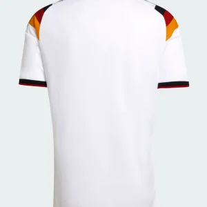 Celebrate Die Mannschaft’s storied legacy with the Germany 2026 WC Home Stadium Jersey from Adidas. Predominantly crisp white base honoring triumphs in 1990 and 2014, it features a bold multicolored “V” diamond pattern across the chest in black, red, and gold German flag colors, classic EQT collar, embroidered Adidas logo with special “Adolf Dassler” authentic badge detail, DFB eagle crest with four stars (1954, 1974, 1990, 2014), and subtle textured fabric debuted in recent friendlies.