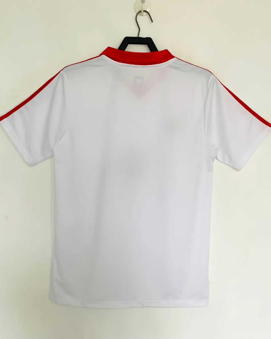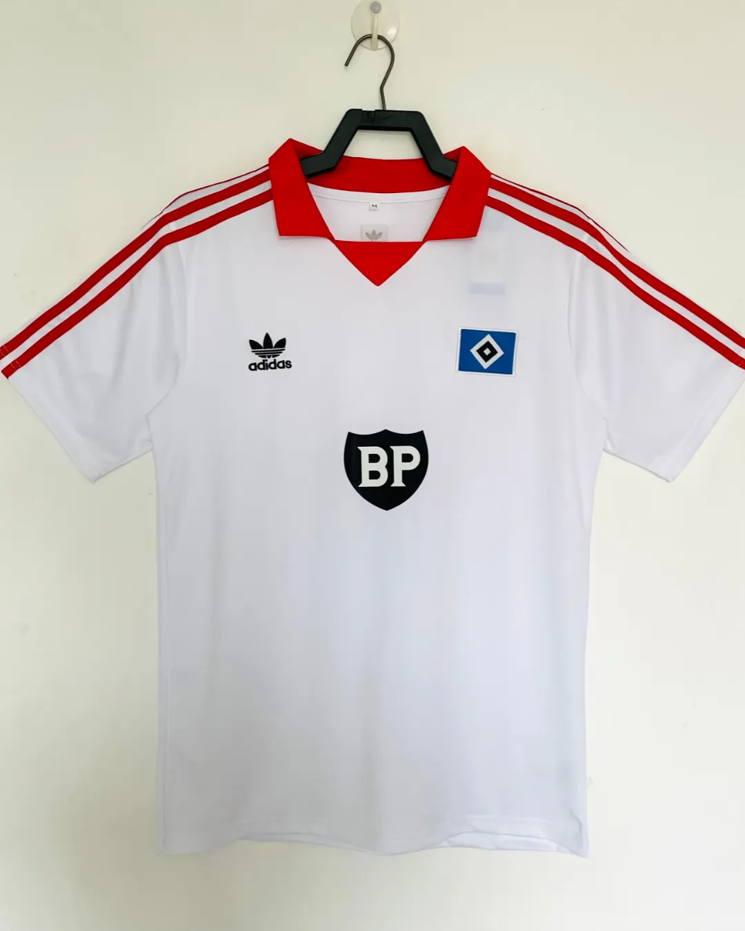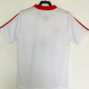 Transport yourself to Hamburger SV’s dominant era with this classic 1979-81 Home Jersey from Adidas, worn during their ascent to European royalty. The timeless white base showcases the iconic black-white-blue HSV crest embroidered on the left chest, complemented by a crisp red polo collar and short sleeves for authentic 70s styling. Constructed from lightweight 100% polyester knit fabric, it delivers breathable comfort mirroring the shirts that graced Volksparkstadion during title-chasing campaigns.