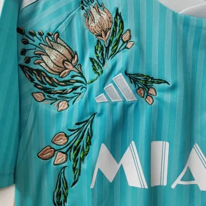 Each embroidered jersey is crafted using the original floral-stitch style pioneered by TheFootballGal, a globally loved creative twist on classic kits.