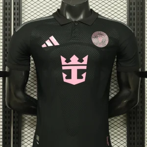 Fuel Inter Miami CF’s championship defense with the Inter Miami CF 26/27 Away Authentic Jersey from Adidas, named “Presagio.” Predominantly sleek black with Bliss Pink club crest, pink Adidas logo, and anthracite grey Three Stripes on shoulders, it features subtle tonal graphic patterns plus “Freedom To Dream” back neck messaging celebrating the club’s visionary spirit. Engineered from 100% recycled polyester with Climacool+ technology, this authentic jersey delivers elite moisture-wicking, breathability, and slim match fit identical to pro versions, complete with ribbed polo collar for street-to-stadium versatility.