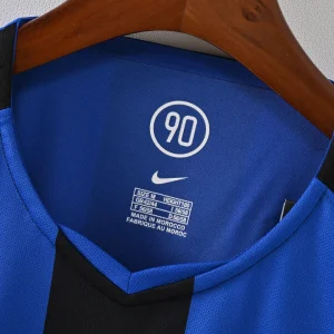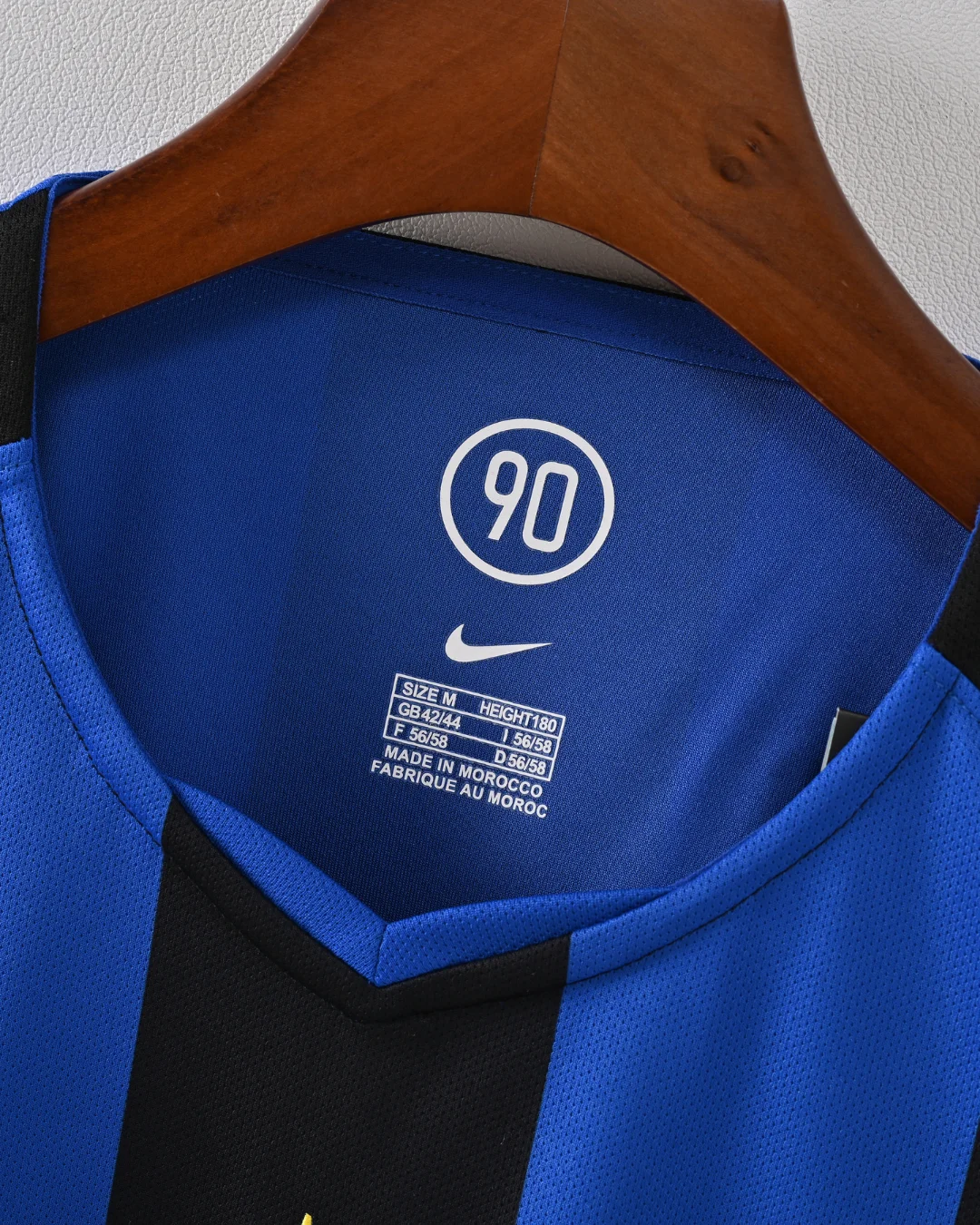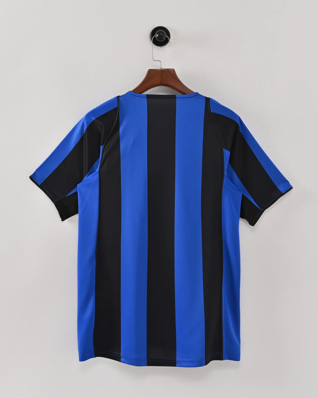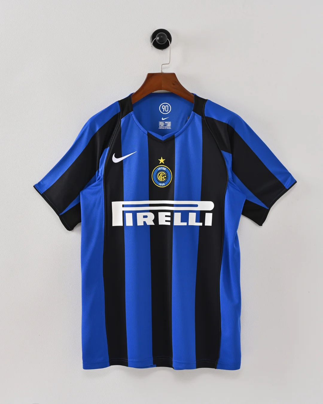 The INTER MILAN 04/05 HOME JERSEY is a classic retro football shirt from the 2004-2005 season, proudly worn by the team under the management of Roberto Mancini. This iconic Nike-made jersey features the traditional Inter Milan blue and black vertical stripes, embodying the club’s signature color scheme. It is made from 100% polyester, offering a lightweight, breathable, and durable fabric for comfort on and off the pitch.
