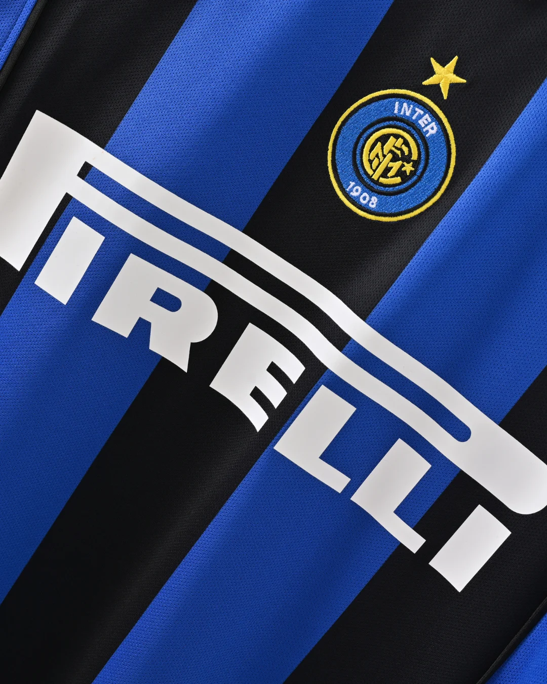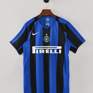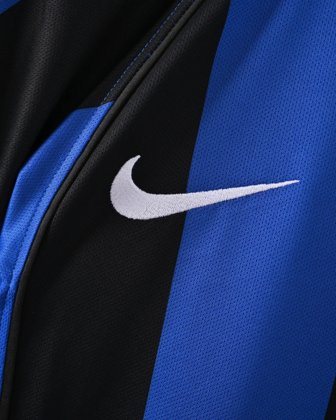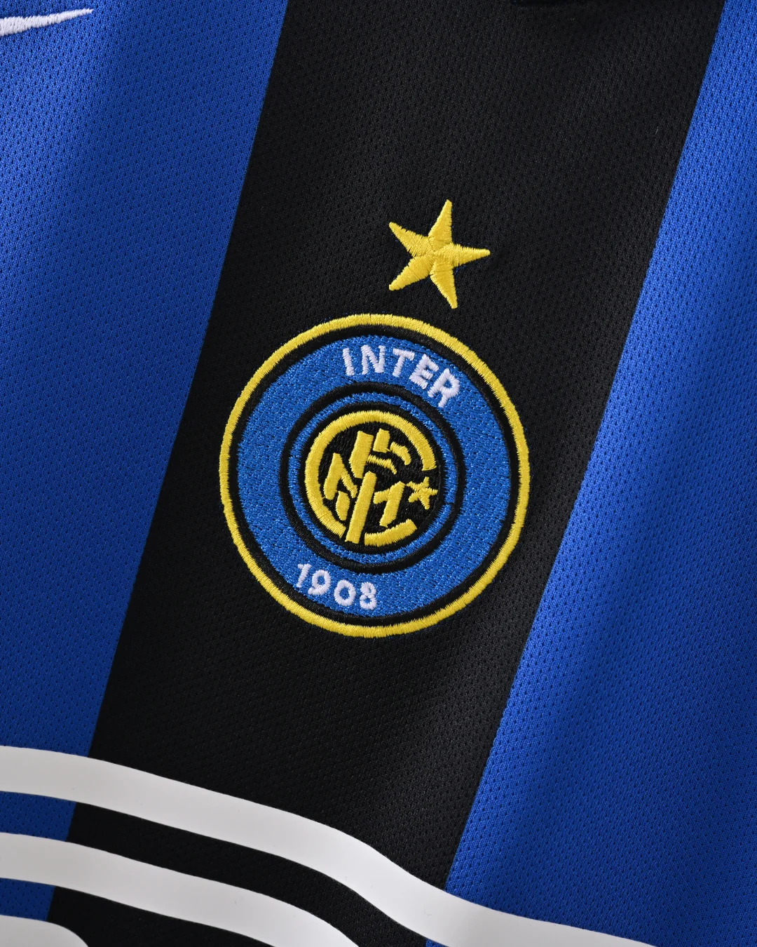 The INTER MILAN 04/05 HOME JERSEY is a classic retro football shirt from the 2004-2005 season, proudly worn by the team under the management of Roberto Mancini. This iconic Nike-made jersey features the traditional Inter Milan blue and black vertical stripes, embodying the club’s signature color scheme. It is made from 100% polyester, offering a lightweight, breathable, and durable fabric for comfort on and off the pitch.