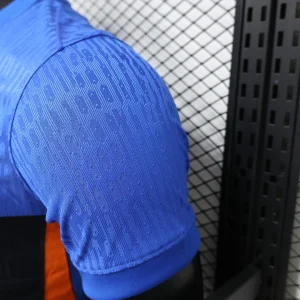Inter Milan’s revolutionary 2025/26 Fourth Authentic Jersey from Nike ACG celebrates Milano’s hosting of the 2026 Winter Olympics, featuring a bold colorblock design with Hyper Blue upper section fading into dominant Black mid-to-lower body, striking Safety Orange accents on logos and side panels evoking high-altitude outdoor gear, historic replacement of Nike Swoosh with ACG (All Conditions Gear) triangle logo on chest, snakeskin-textured Inter crest encircled by mountain climbing rope motif. Perfect for young Nerazzurri fans, this authentic player replica incorporates Dri-FIT ADVANCED technology with engineered mesh ventilation for all-weather performance, clean crew-neck collar, “Internazionale. All Conditions Gear. Milano.” collar inscription, contoured athletic fit optimized for elite movement.