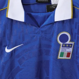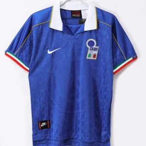 Celebrate a classic era of Italian football with the Italy 1995 Home Jersey, an iconic Nike design worn by the Azzurri as they qualified for Euro 1996. This jersey stands out with its elegant sky-blue color, inspired by the traditional Savoy blue that symbolizes Italy’s royal heritage and football history.