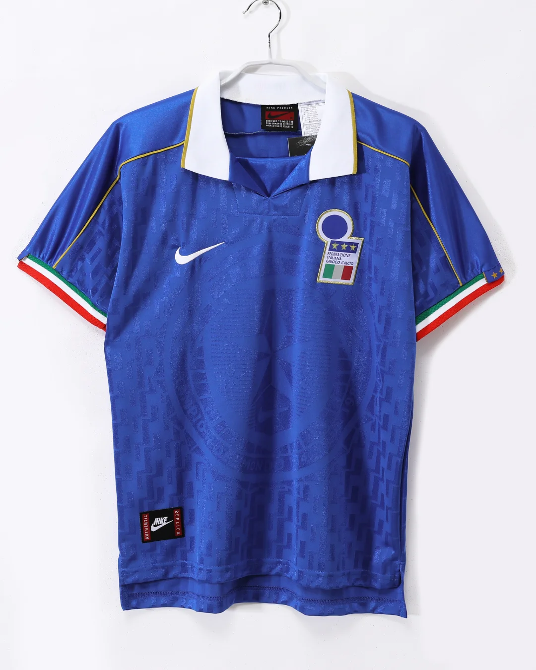 • Prominent central national badge with Italian Republic emblem and three World Cup stars
