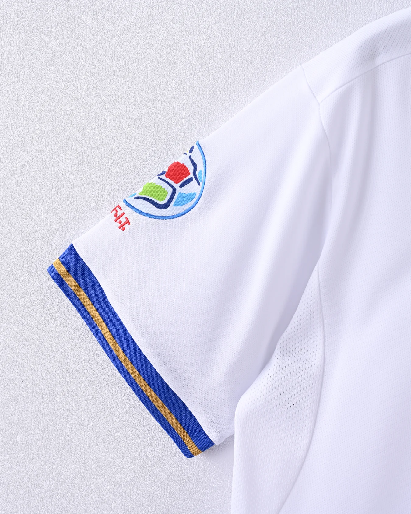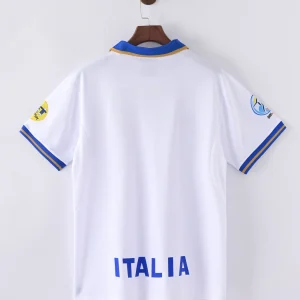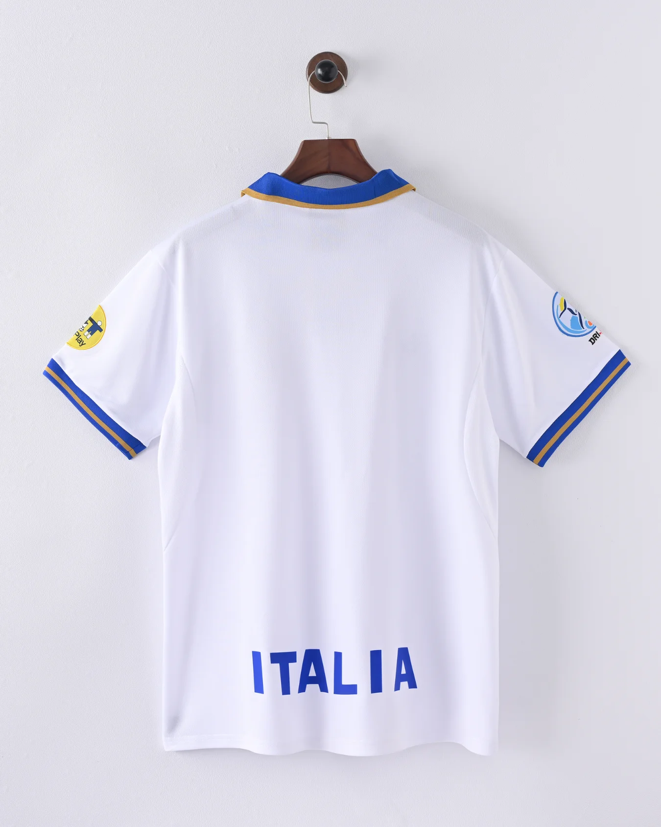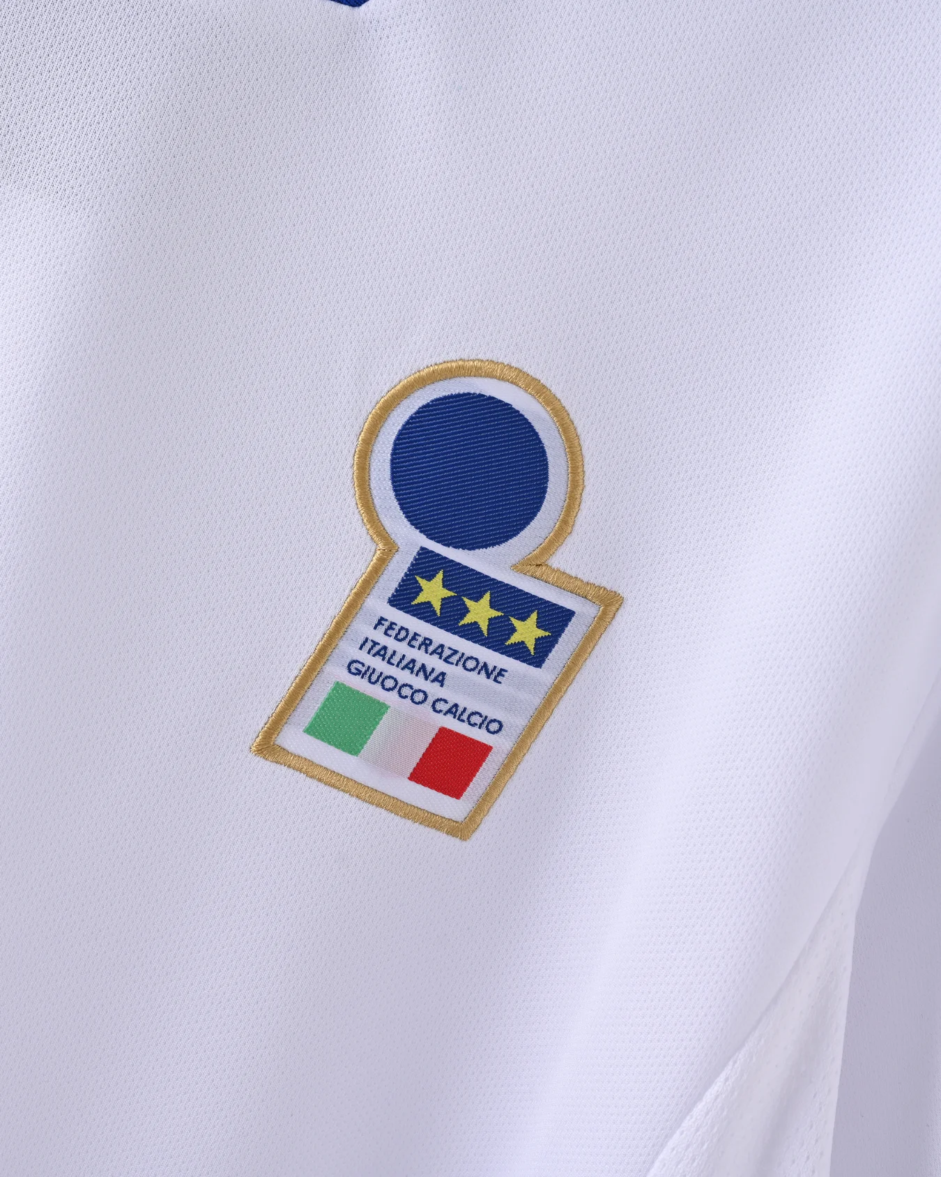 The Italy 1996 Away Jersey is a masterclass in understated style — a crisp white canvas subtly framed by the regal touches of blue and gold. Worn during the UEFA Euro ’96 campaign, this jersey echoes an era where Italian football combined tactical discipline with undeniable flair, led by icons like Roberto Baggio and Alessandro Del Piero.