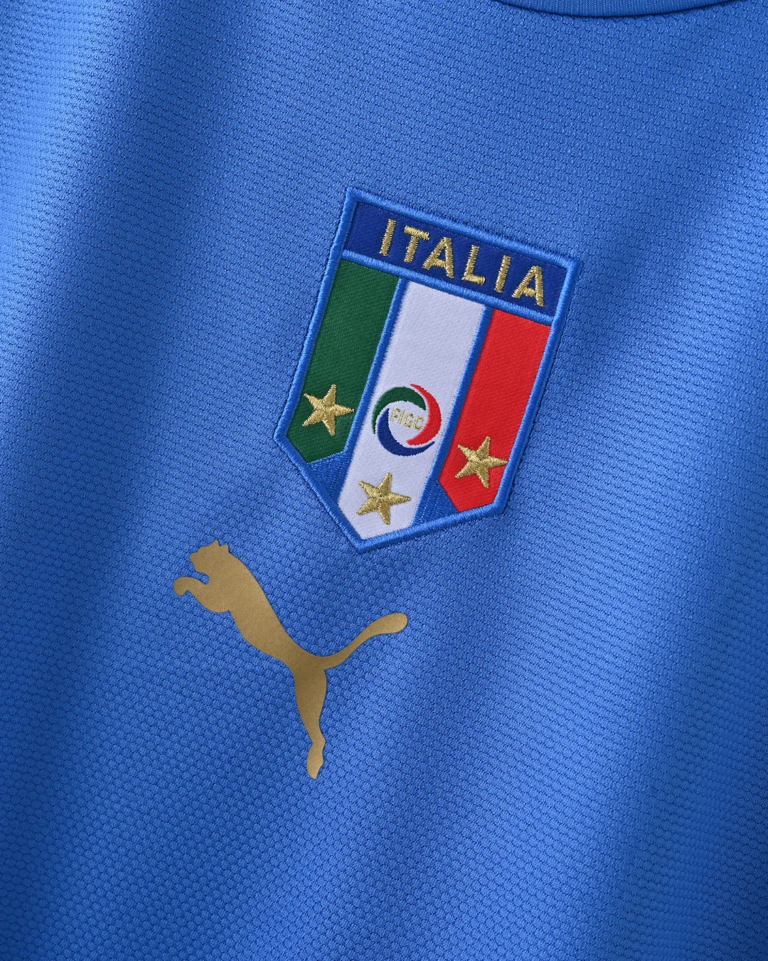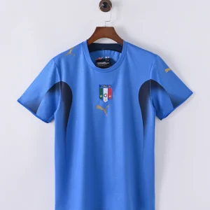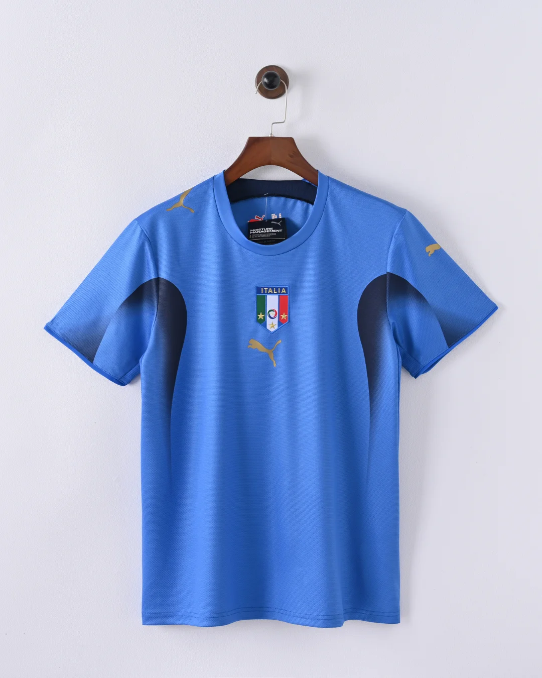 The Italy 2006 Home Jersey by Puma is an iconic shirt worn by the Azzurri during their triumphant FIFA World Cup campaign in Germany, where they secured their fourth world title. The jersey features a sleek deep Azzurri blue base with elegant white and subtle gold accents that reflect Italy’s confidence, quality, and the spirit of a golden generation led by stars like Fabio Cannavaro and Francesco Totti.