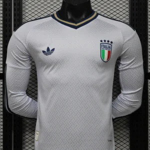 Celebrate Italian football with the Italy 2026 World Cup Away Authentic Jersey – Long Sleeve from adidas, a refined design that brings together national heritage and modern performance. The shirt features a clean Aero Blue base with elegant navy and gold accents, drawing inspiration from the sophistication of Italian tailoring and the classic suits worn in moments of celebration. Subtle woven detailing adds texture and depth, while the navy adidas branding and FIGC crest give the jersey a premium finish worthy of the Azzurri.