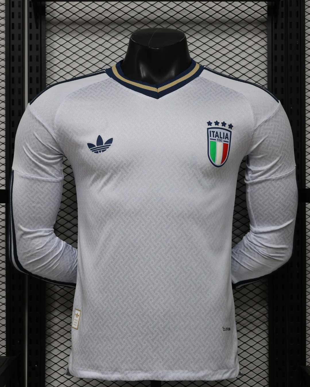 Heat-transferred adidas logo, FIGC crest, and 3-Stripes detailing