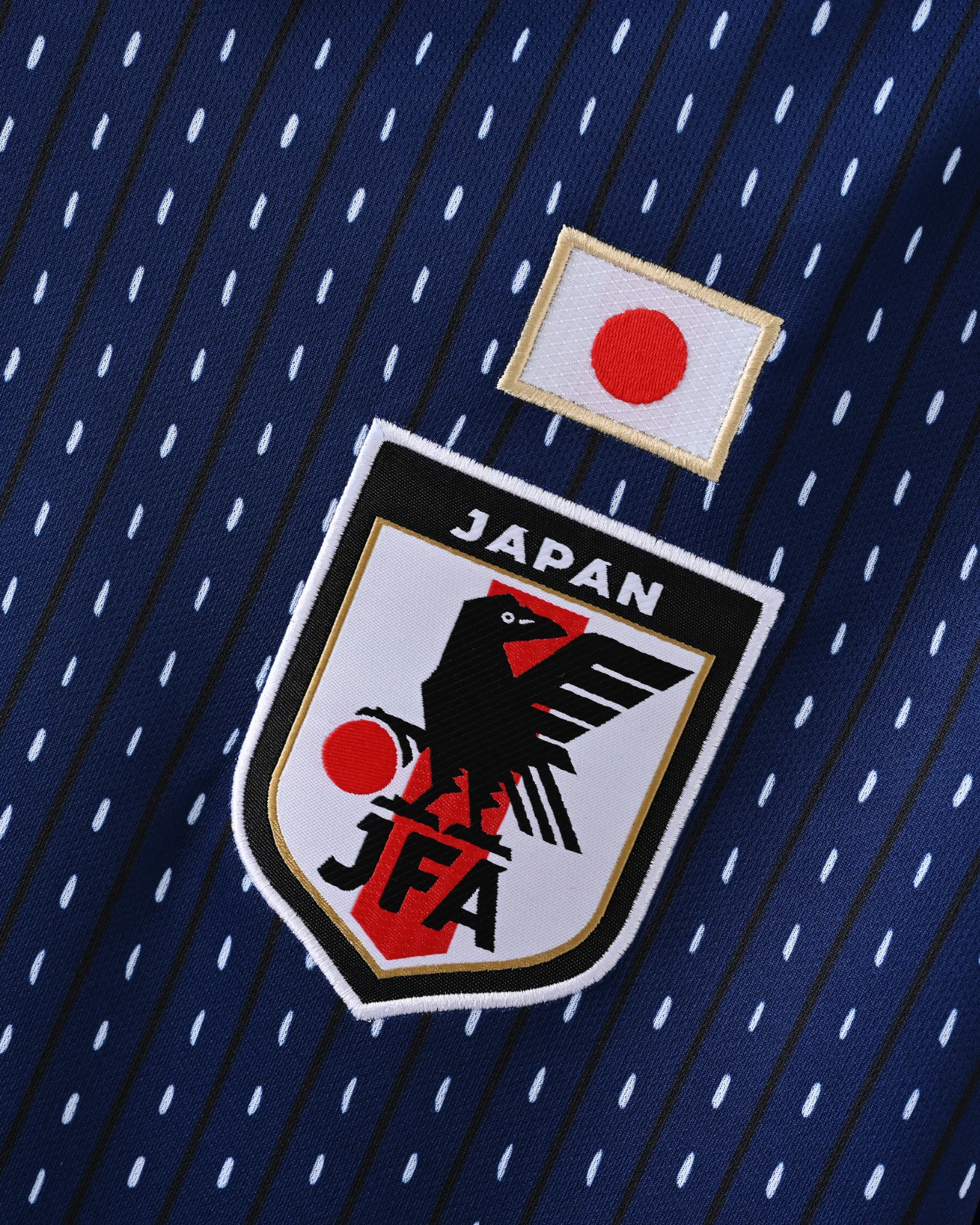 Woven Japan crest and heritage flag detail at the nape