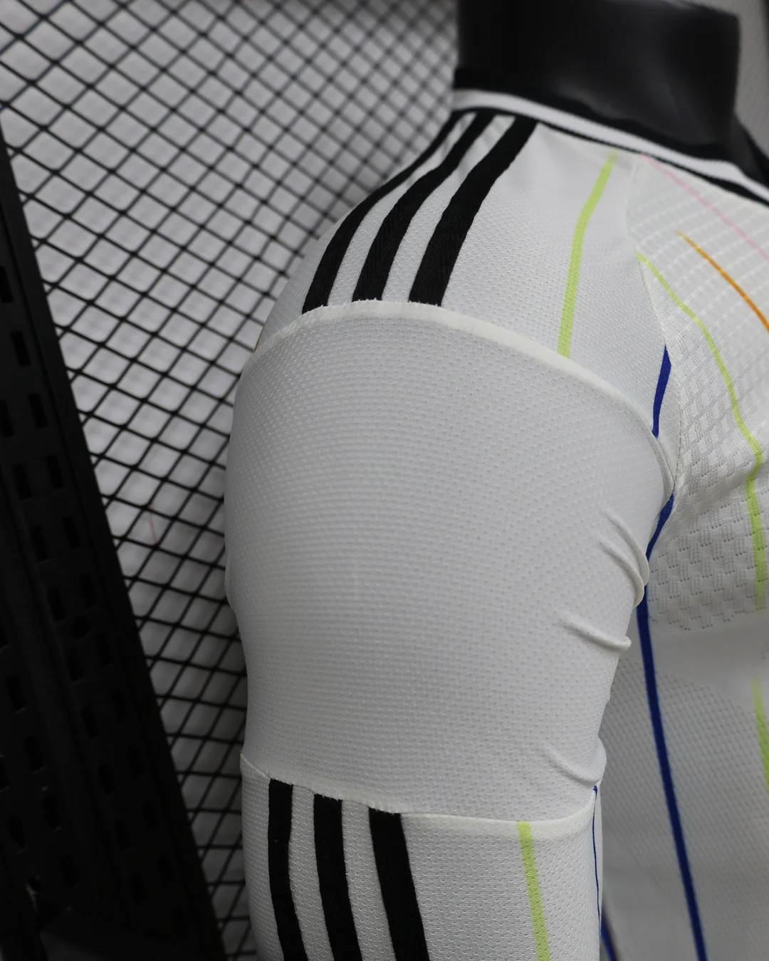 Celebrate the pride of Japanese football with the Japan 2026 World Cup Away Authentic Jersey – Long Sleeve from adidas. The design features a clean off-white base brought to life by a multi-coloured vertical stripe graphic across the shirt, with 12 stripes representing each player and a bold central red stripe symbolizing the heart of the Japanese football family. It’s a striking and meaningful look that reflects teamwork, unity, and the spirit of Japan on the world stage.
