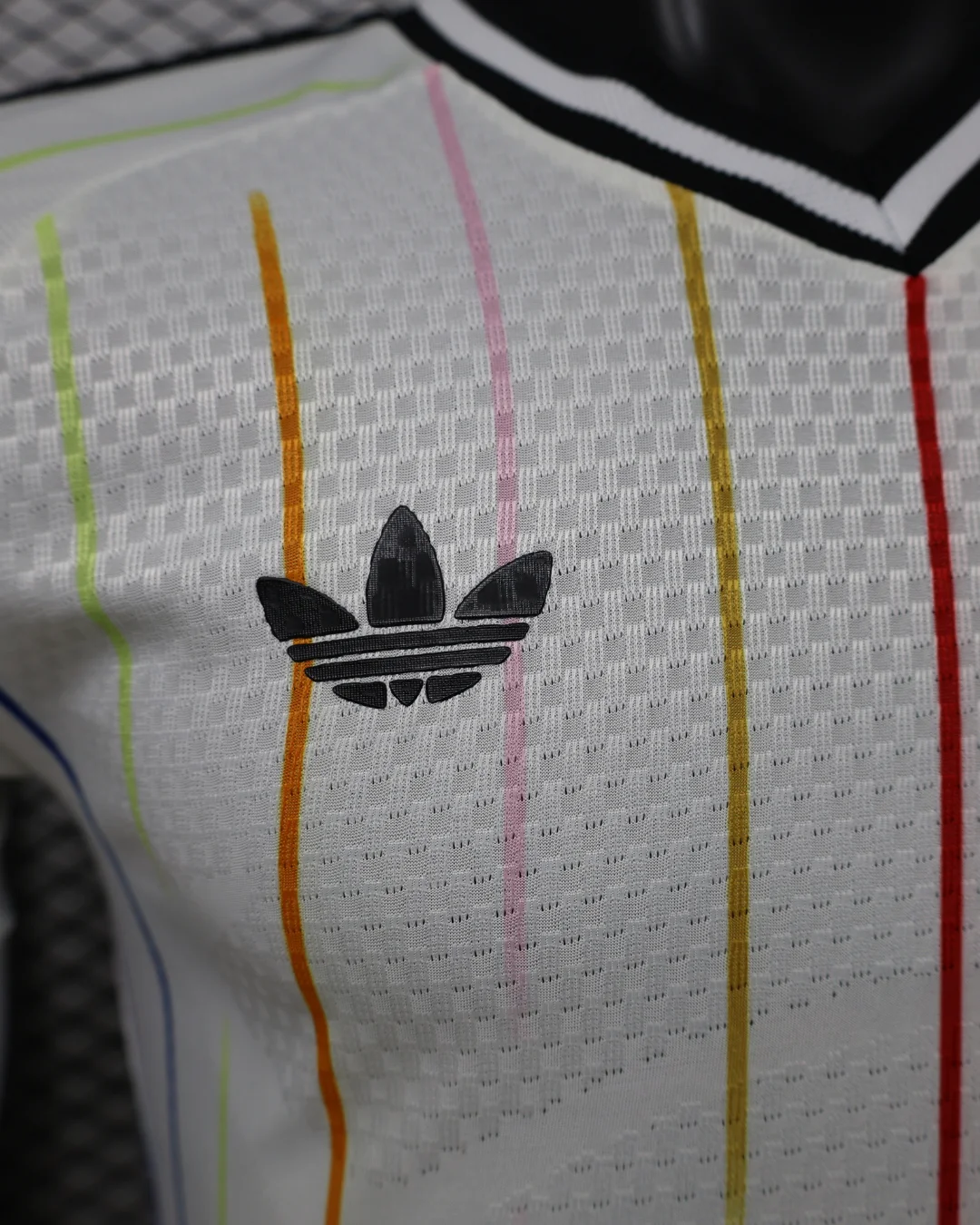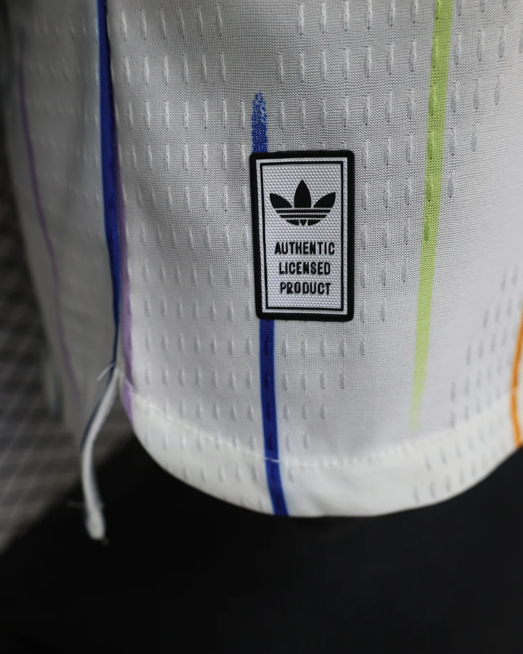 Heat-transferred federation crest, adidas branding, and hidden UV authenticity label