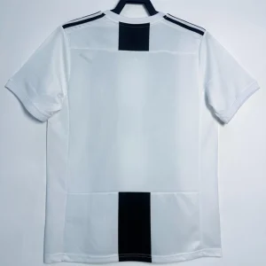 Celebrate Juventus’ eighth consecutive Serie A title with the Juventus 2018/19 Home Jersey, a modern Adidas reinterpretation of the club’s iconic black and white identity. This striking jersey features a simplified striping pattern with two bold black vertical stripes on the front and one on the back, paired with all-white sleeves showcasing black Adidas 3-Stripes on the shoulders and a crisp white V-neck collar.