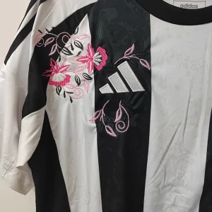 Each embroidered jersey is crafted using the original floral-stitch style pioneered by TheFootballGal, a globally loved creative twist on classic kits.
