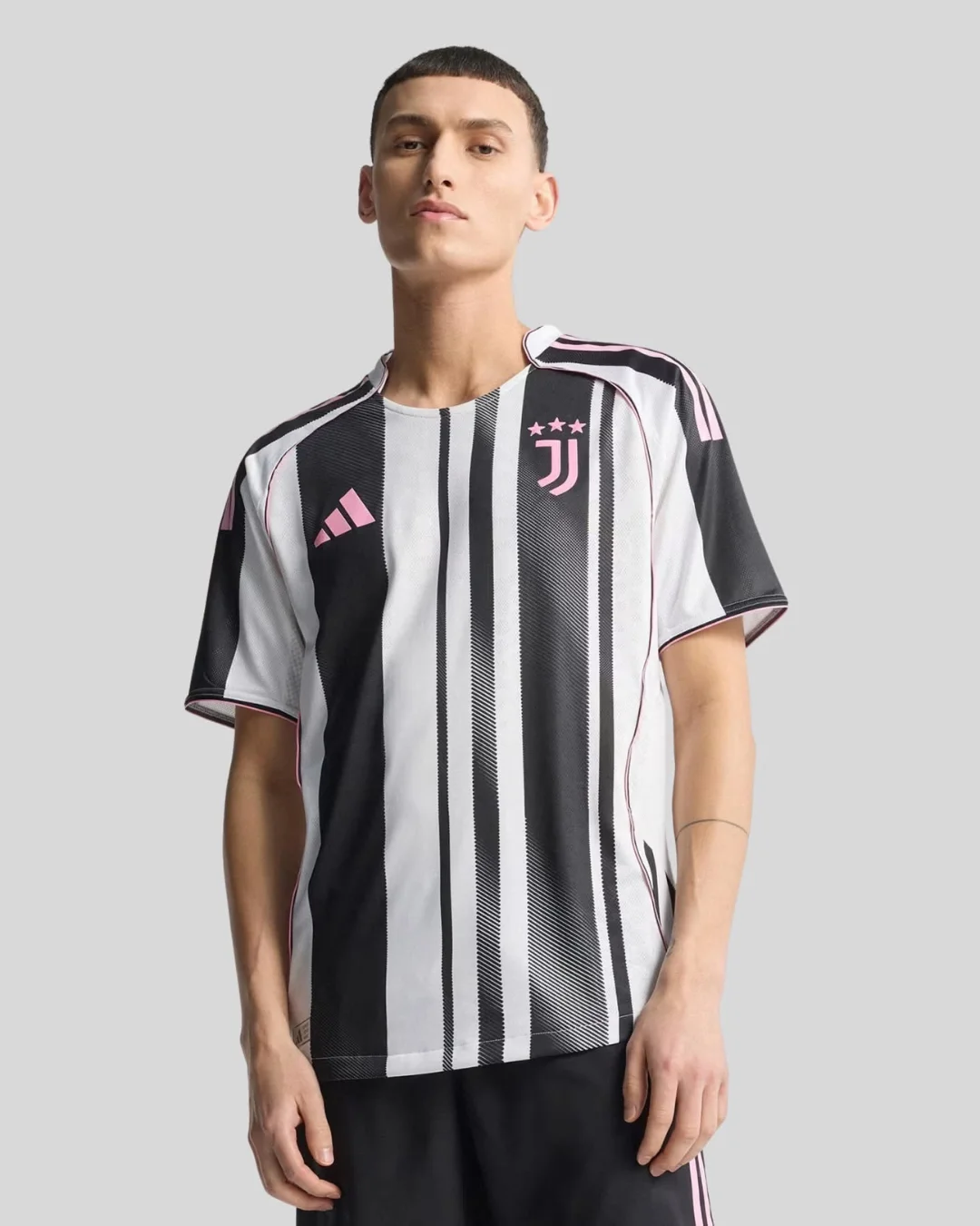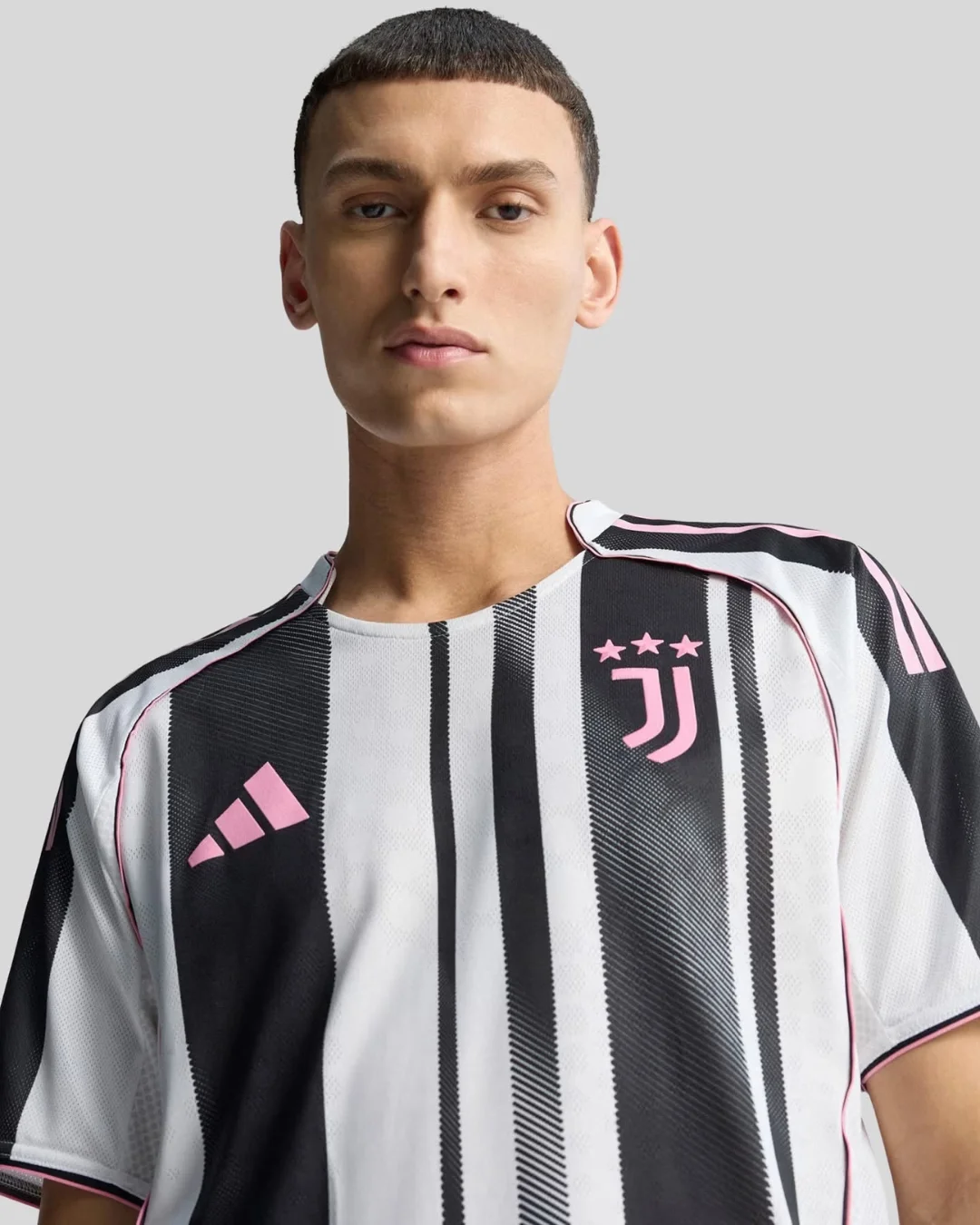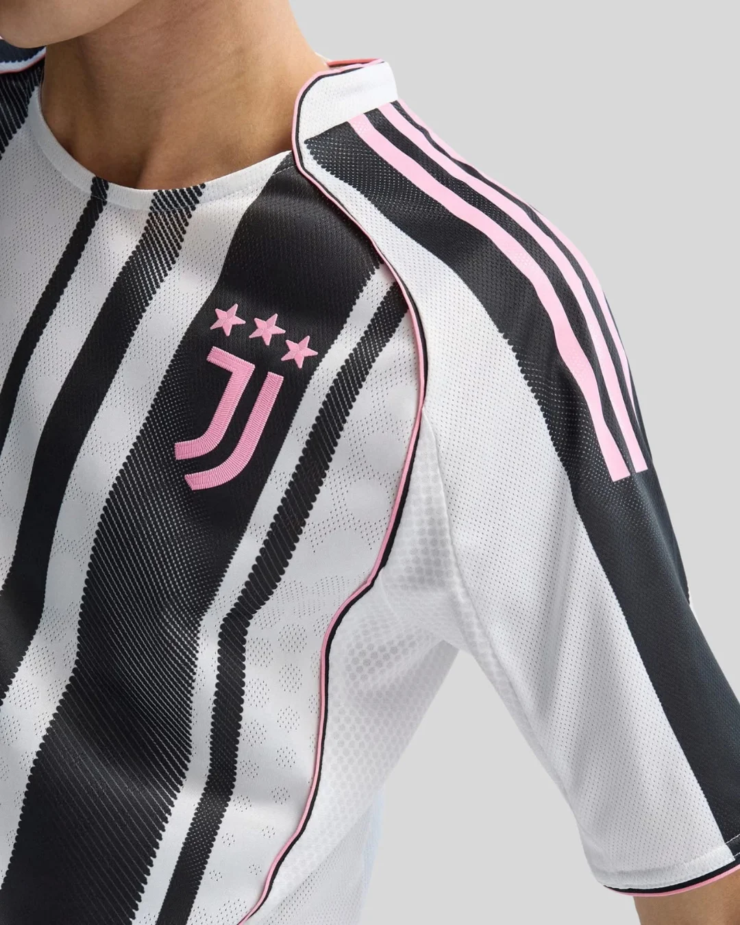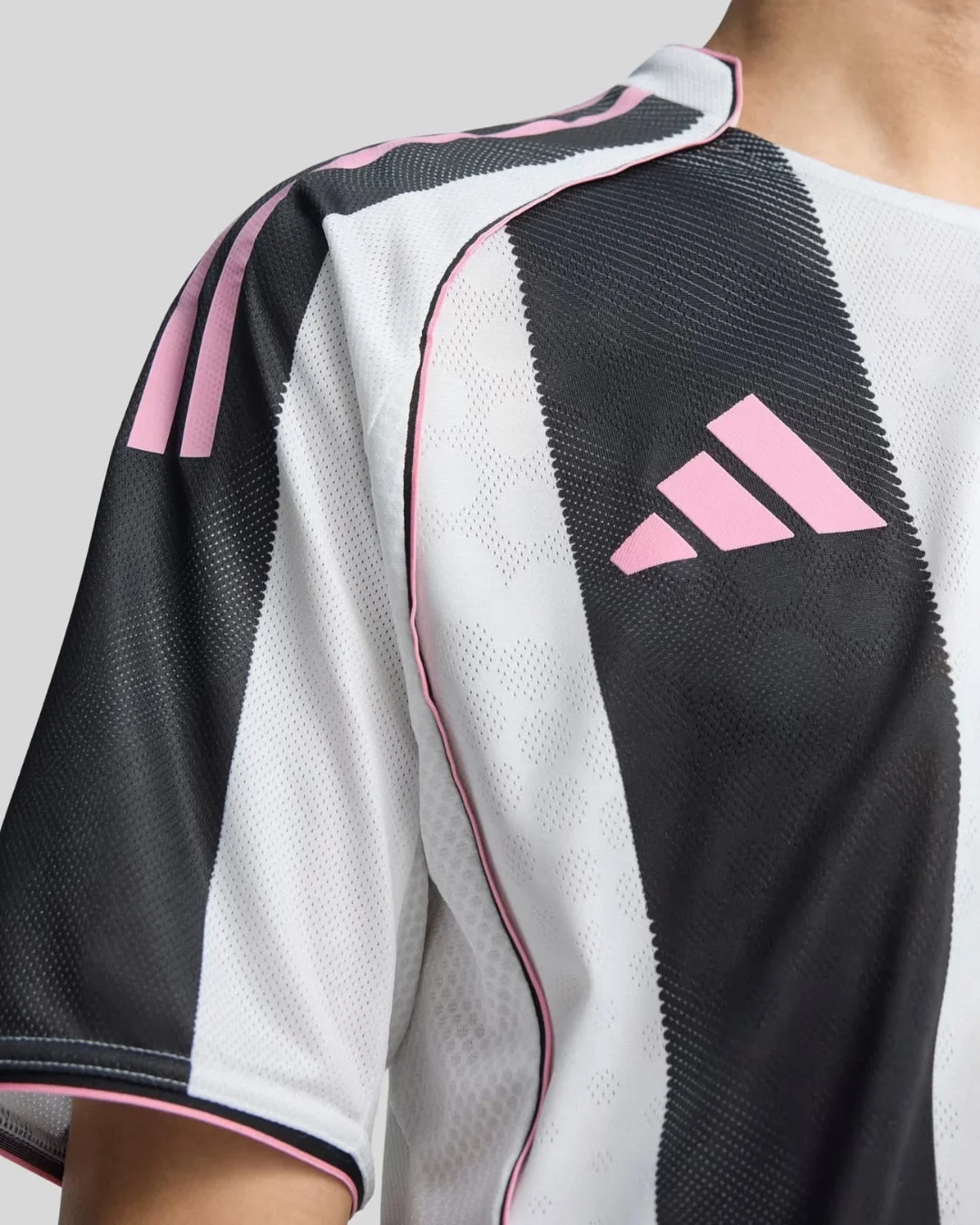 The Juventus 2025/26 Home Authentic Jersey by adidas offers a bold, modern reinterpretation of the club’s iconic black and white stripes, infused with a distinct Italian fashion flair. This jersey features structured stripes with varying thicknesses, creating a dynamic and eye-catching pattern that honors Juventus’ rich heritage and youthful spirit. Finished with the club’s signature pink accents on the crest, adidas logo, and three stripes along the shoulders, the design pays tribute to Juventus’ founding traditions while adding a fresh, contemporary touch.