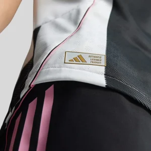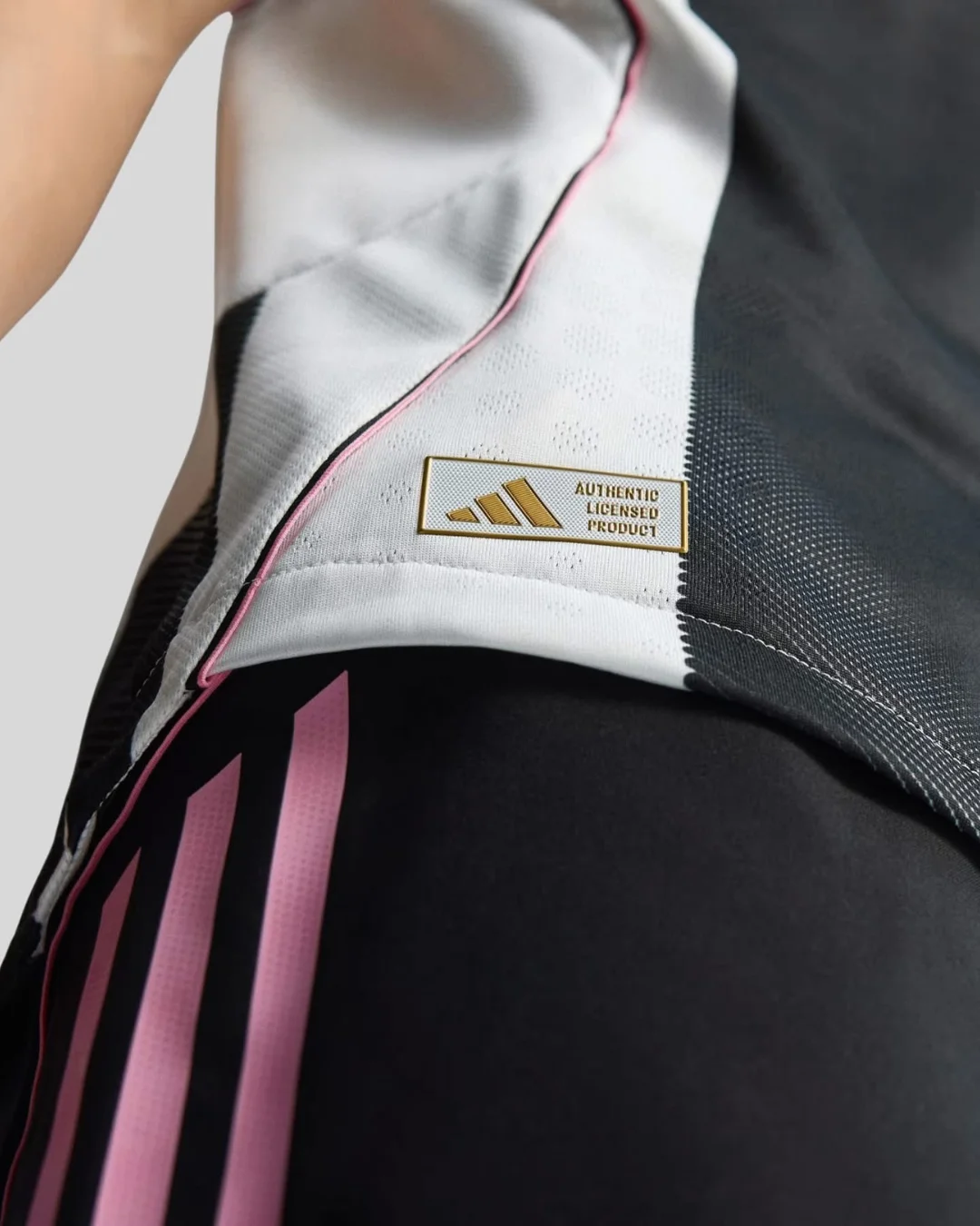 Signature pink detailing on club crest, adidas logo, and shoulder stripes