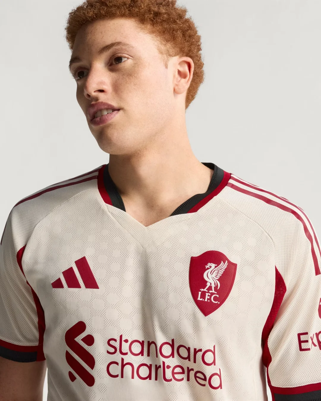 The Liverpool FC 2025/26 Away Authentic Jersey by adidas is a striking homage to club history and designed for pure on-pitch performance—the exact kit worn by first-team players in the 2025/26 campaign. This season’s away jersey presents a cream off-white base with distinct black and red detailing, a color palette synonymous with some of Liverpool’s most iconic away shirts from the past.