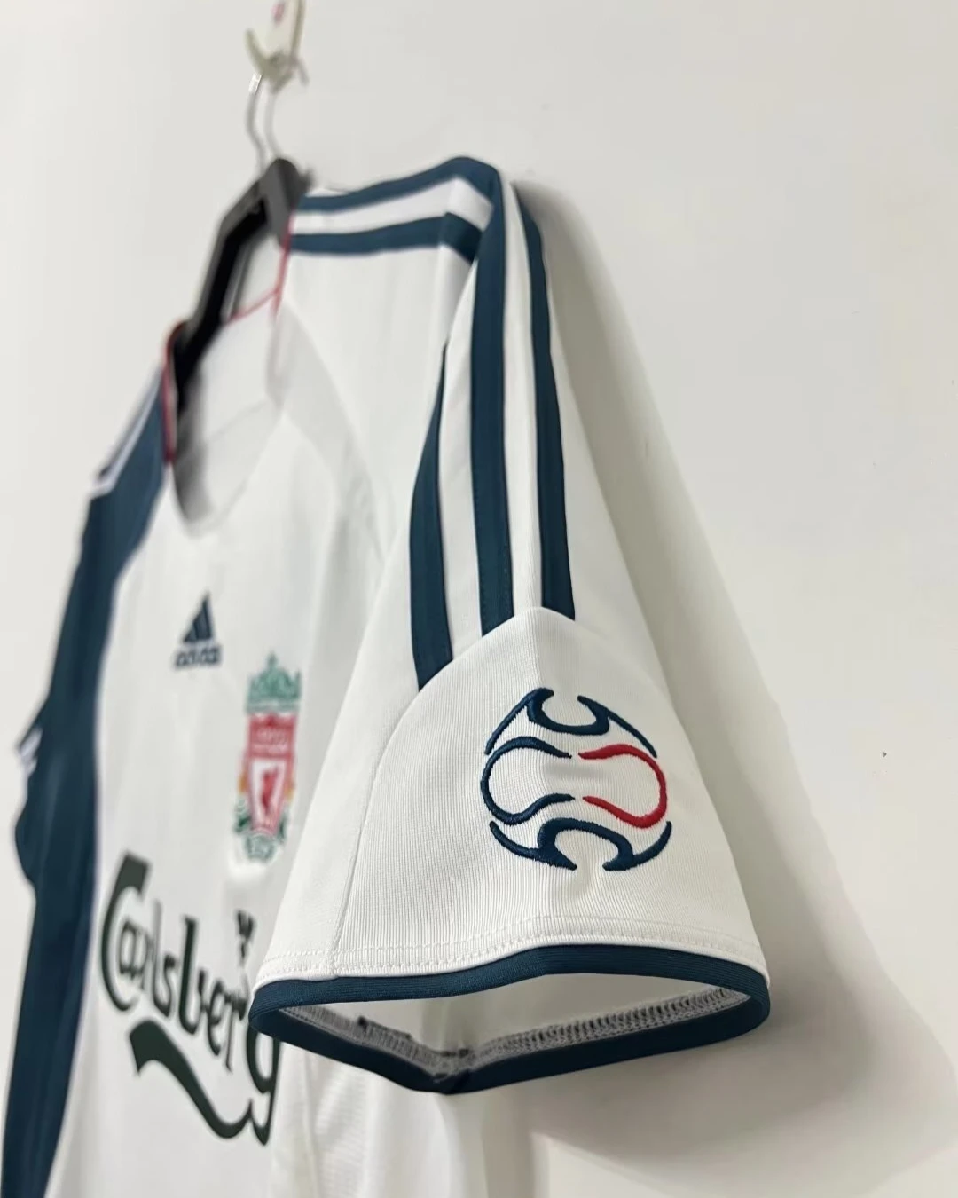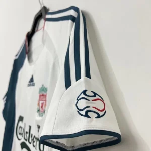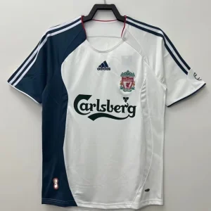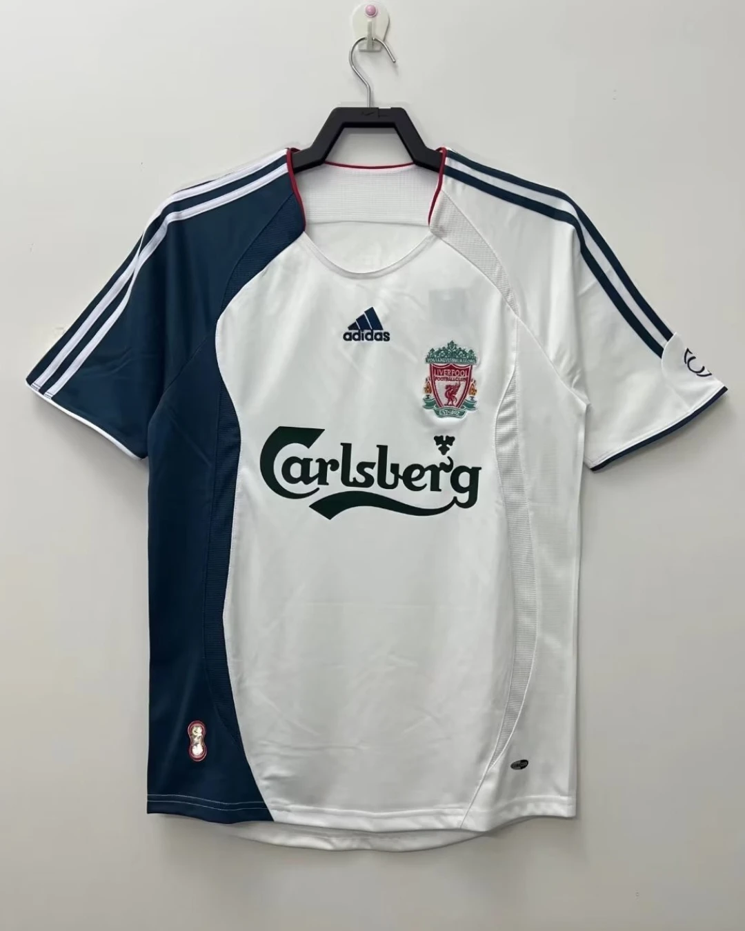 Relive a bold and memorable Anfield era with the Liverpool FC 06/07 Third Jersey, a distinctive adidas design worn during the 2006/07 season. This eye-catching third kit features a white base with green and red trim, giving it a clean but unusual look that stood out across European and domestic matches. The shirt was used in Liverpool’s first season back with adidas and became closely associated with players such as Steven Gerrard, Peter Crouch, Robbie Fowler, Xabi Alonso, John Arne Riise, and Harry Kewell.