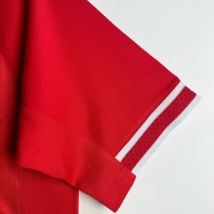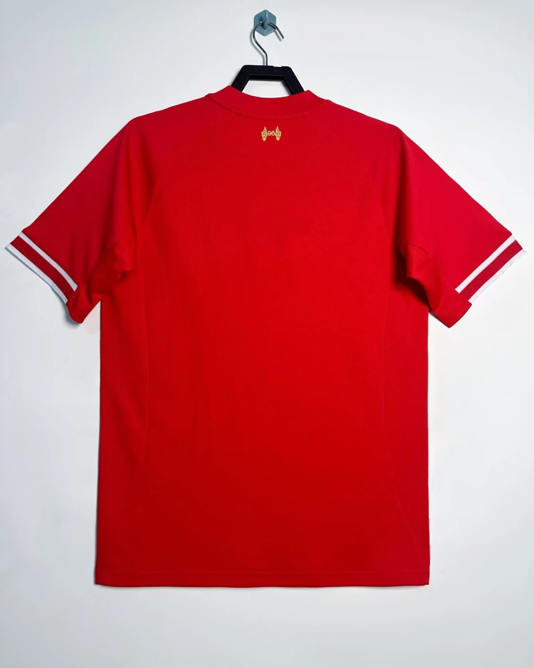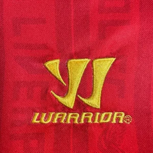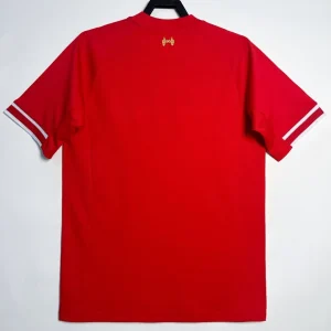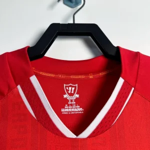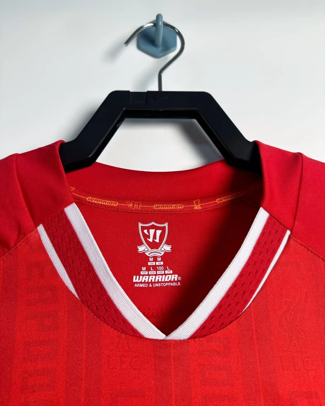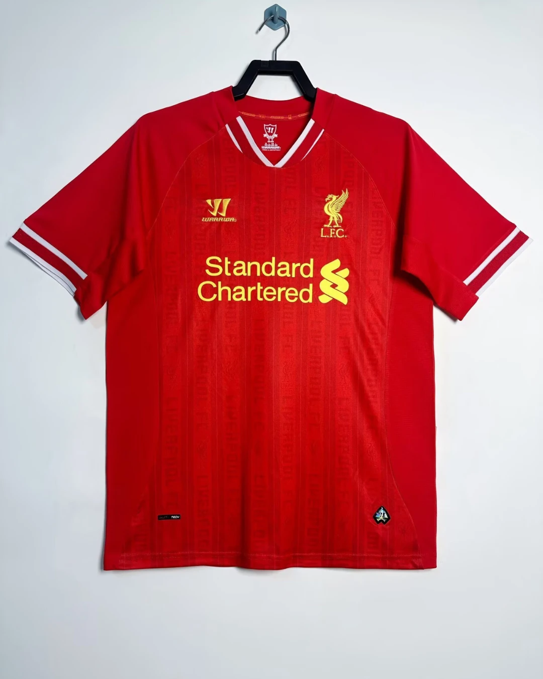 Liverpool FC’s iconic 2013/14 Home Jersey from Warrior powered their thrilling Premier League title challenge under Brendan Rodgers, worn by Luis Suárez, Steven Gerrard, and Daniel Sturridge during a dramatic season that ended with just two points short of glory at Anfield. The classic red base features subtle tonal stripes with Liver Bird motifs across the chest, yellow embroidered club crest and Warrior logo, white trim on the collar and sleeve cuffs, and bold yellow “Standard Chartered” sponsor, a modern tribute to Shankly’s all-red legacy.