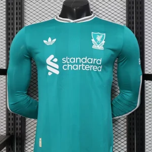 Step into the future of football with the Liverpool FC 25/26 Third Authentic Jersey in an exclusive long sleeve edition, designed by adidas to reflect the club’s rich history and forward-looking ambition. This stunning sea green jersey marks the Reds’ return to adidas as their kit supplier, blending iconic design elements with cutting-edge performance technology.