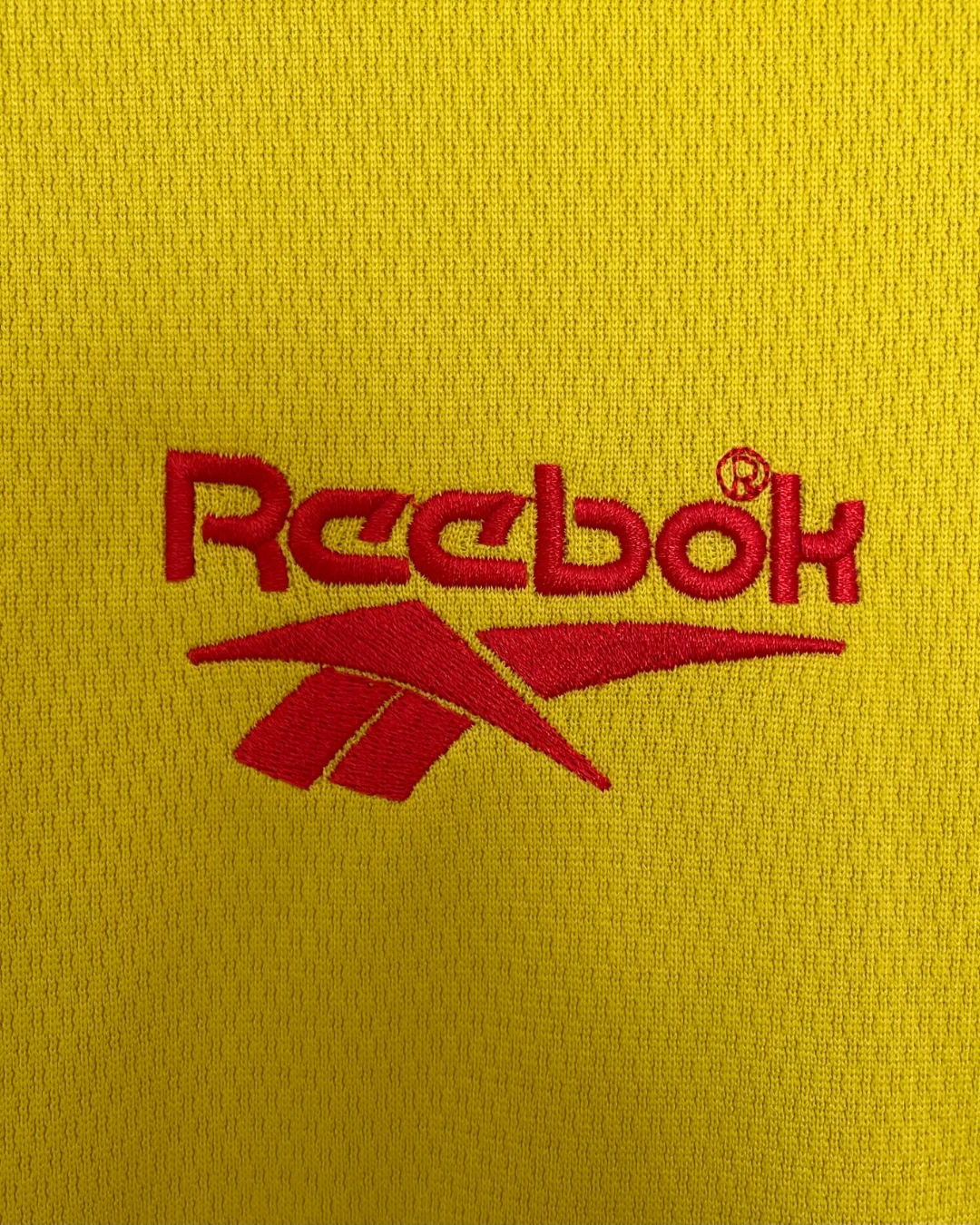 Embroidered club crest and Reebok logo