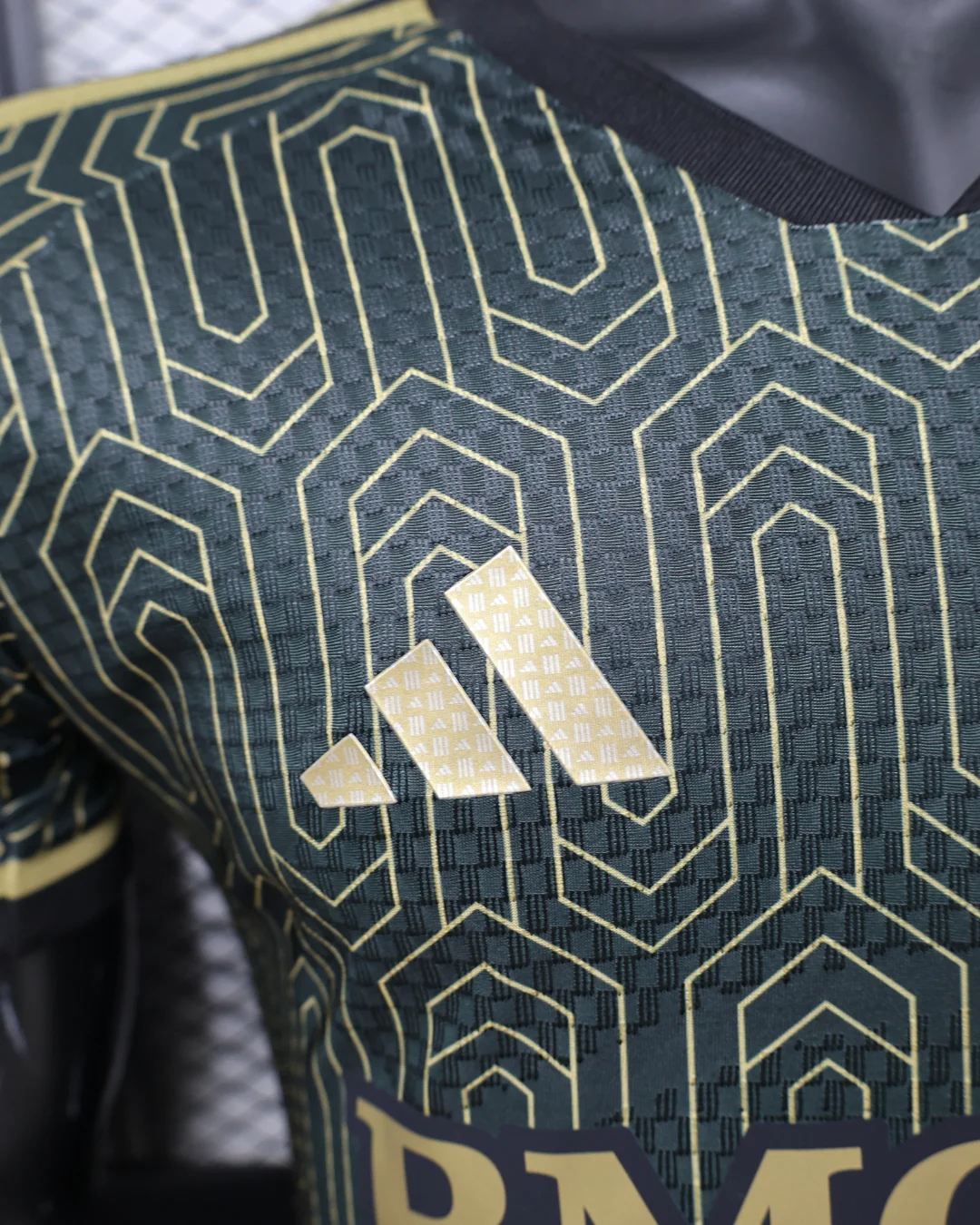 Heat-pressed club crest, adidas branding, and heritage sign-off details