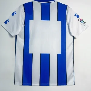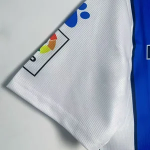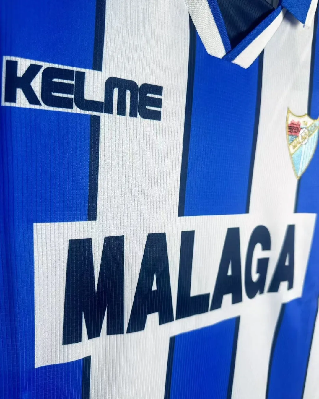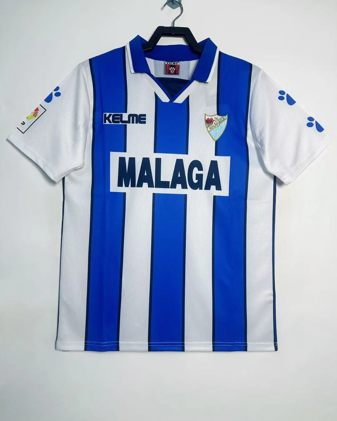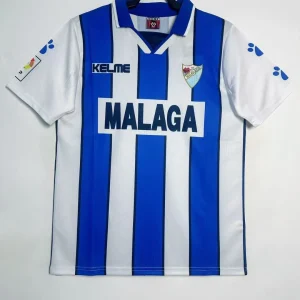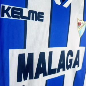 Relive Málaga CF’s competitive Segunda División campaign with this classic 1998/99 Home Jersey from Kelme, worn during their push for La Liga promotion under coach Sergio Kresic. This iconic shirt features blue and white vertical stripes, a hallmark of Málaga’s identity, framed by a fold-over V-neck collar and the embroidered club crest featuring the city’s coat of arms on the left chest opposite the Kelme logo. Constructed from 100% polyester knit fabric with breathable mesh panels, it delivers late-90s comfort true to La Rosaleda Stadium’s passionate atmosphere.